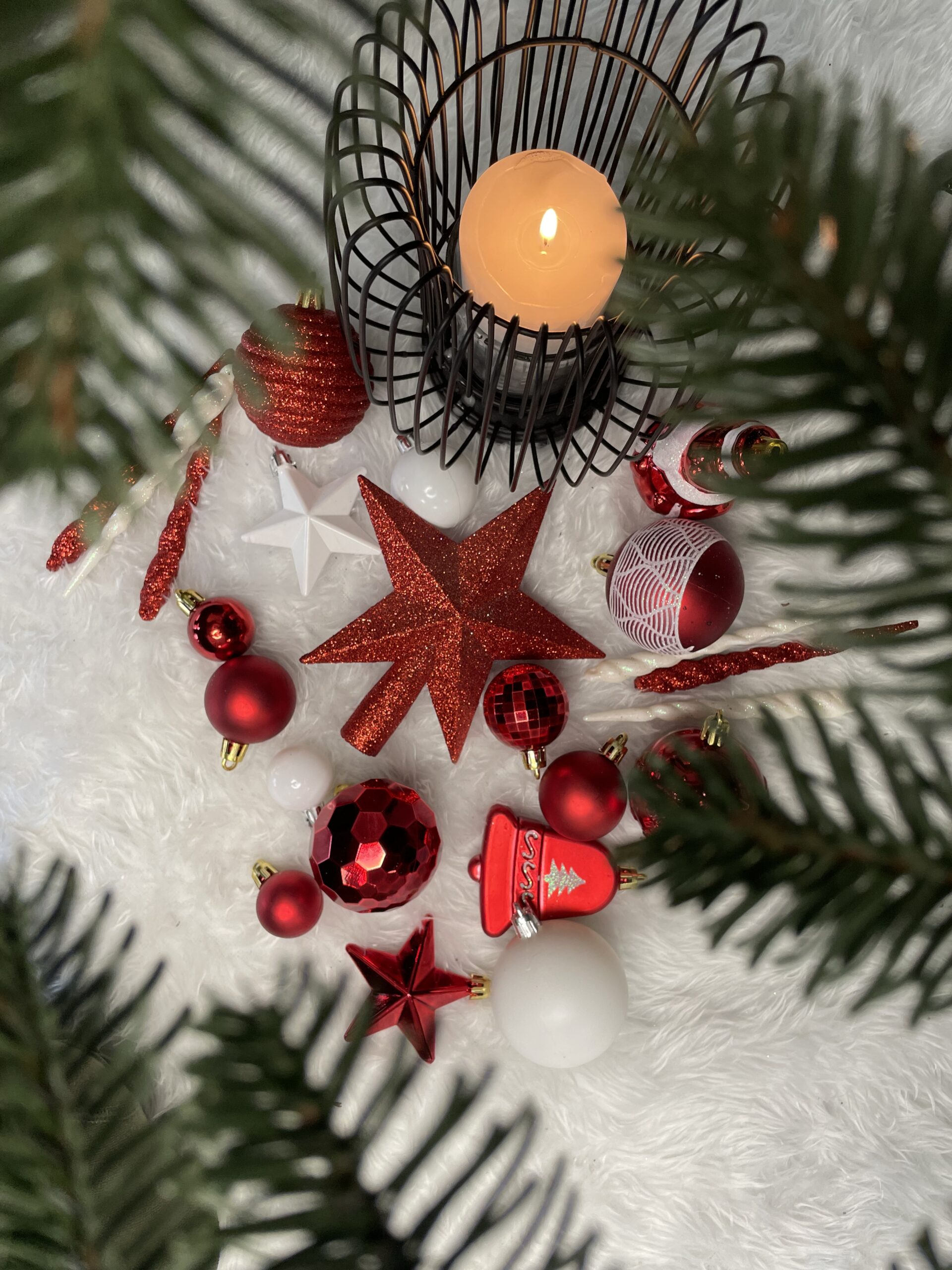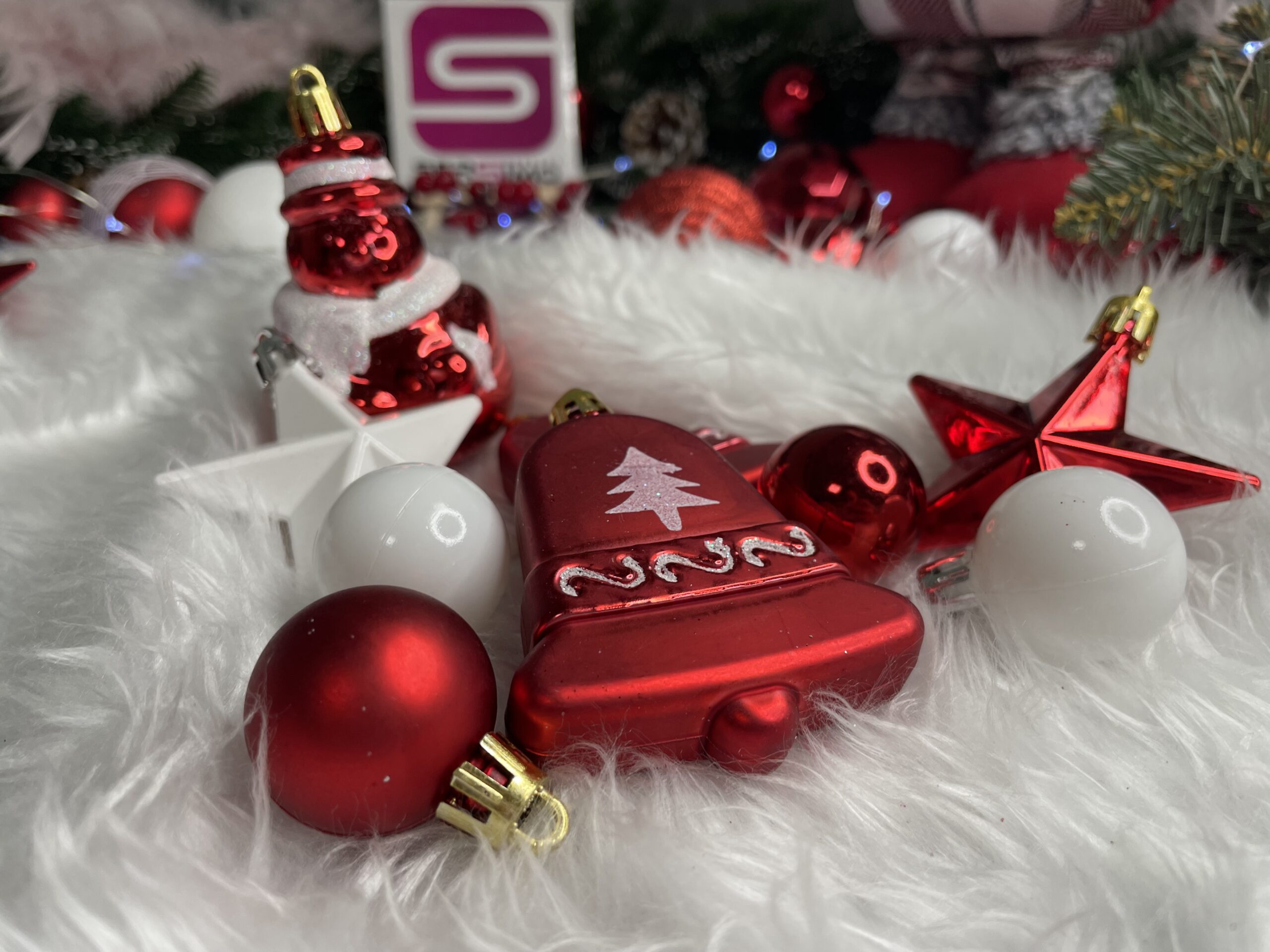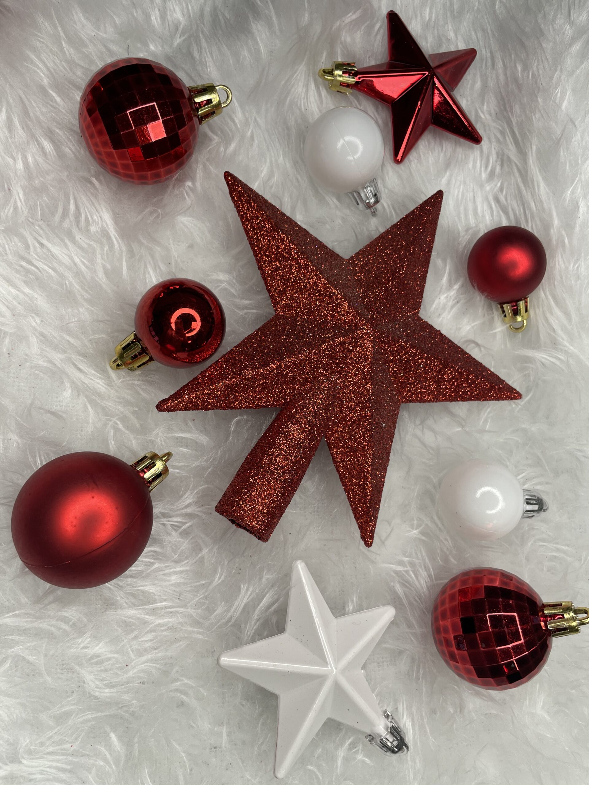 Globurile si decoratiunile dintr-un set cu o singura culoare va vor permite sa creati un decor minunat pentru brad. Arata frumos in timpul zilei si dupa intuneric, insotite de iluminat festiv. Setul include snururi care va permit sa agatati globurile rapid si usor in locul dorit. Designul din plastic creste siguranta datorita materialului incasabil. Alegerea lor in locul globurilor de sticla va contribui la siguranta celor mici din casa. Diversele dimensiuni va permit sa creati modele inedite de aranjare a bradului de Craciun. Culoare: alb rosu Material: plastic Cantitate: 105 piese Modele: 10 modele diferite incluse in set Diametru: diverse marimi Setul include urmatoarele piese 16x mini glob- 3 cm 24x glob mic mata - 4 cm 12x glob disco mic -4cm 2x om de zapada - 8 cm 4x stea rosie lucioasa - 6 cm 4x stea alba, mata - 6 cm 6x clopotel - 7 cm 8x turturi rosii cu sclipici - 12 cm 4x turturi albe cu sclipici - 12 cm 4x sclipici mare - 6 cm 8x glob de covoras mare - 6 cm 4x glob de covoras mare cu decor - 6 cm 4x glob lucios mare - 6 cm 2x glob mare geometric lucioasa - 6 cm 2x glob lucios cu model in relief - 6 cm 1x stea cu sclipici pe varf - 15 cm Atentie! Numarul de piese din set poate varia + - 1 buc.