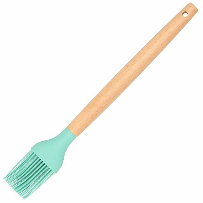 Toate capetele ustensilelor sunt fabricate din silicon durabil, moale si flexibil, care rezista la temperaturi ridicate de pana la 230°C, prevenind astfel topirea ustensilelor.Manerul din lemn natural este neted si confortabil la atingere si spre deosebire de alte materiale, previne transferul de caldura in timpul procesului de gatire, protejandu-va astfel mainile.Setul include un suport pentru ustensile care ajuta la organizarea si depozitarea acestora. Astfel, ustensilele pot fi pastrate la indemana, pe blatul din bucatarie.Fiecare maner din lemn este prevazut cu un orificiu ce permite agatarea ustensilelor intr-un suport cu carlige pe perete. Setul contine: Suport depozitare – inaltime 16,5 cm, diametru aprox 11 cm Cleste – inaltime 25 cm, lungime maner 10 cm, latime maxima aprox 6 cm Polonic – inaltime totala 32 cm, lungime maner 18,5 cm, adancime oala 4 cm Lingura – inaltime totala 31,5 cm, lungime maner 18,5 cm, diametru Lingura perforata – inaltime totala 32 cm, latimea lamei 8 cm, lungime maner 18,5 cm Spatula fara gauri – inaltime totala 32 cm, latimea lamei 8 cm, lungime maner 18,5 cm Spatula pentru prajituri – inaltime totala 31,5 cm, latime spatula 6,5 ​​cm, lungime maner 18,5 cm Spatula rotunjita pe o parte – inaltime totala 32 cm, lungime maner 18,5 cm Lingura pentru paste – inaltime totala 31,5 cm, lungime maner 18,5 cm, latime strecuratoare 6 cm Pensula pentru ungere – inaltime totala 27,5 cm, lungime maner 18,5 cm Strecurator / skimmer – cu gauri, inaltime totala 31,5 cm, lungime maner 18,5 cm, latime lingura 7 cm Tel – inaltime totala 28 cm, partea de prindere 12,5 cm, latimea grapperului 3,5 cm