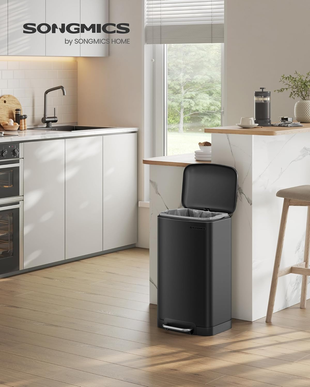 Reciclarea poate fi usoara: Tot ce trebuie sa faceti este sa apasati pe pedala pentru a deschide capacul, iar acum aveti mainile libere pentru a depozita deseurile reciclabile. De asemenea, nu va veti face griji cu privire la animale de companie care rastoarna accidental cosul de gunoi, deoarece acesta ramane etans atunci cand este inchis. Solutie inteligenta pentru gunoi: Rezistent si compact, acest cos de gunoi de 30L vine cu un design inteligent. Galeata interioara cu manere este pentru o indepartare usoara, iar gaura din spate impiedica alunecarea sacului de gunoi. Specificatii: Culoare: NegruMaterial: Cos din otel, galeata interioara din plasticDimensiunea produsului: 34 x 25 x 61,5 cm (L x l x i)Dimensiuni galeata interioara: 32 x 22,5 x 52 cm (L x l x i)Inaltime totala cu capacul deschis: 82 cmGreutatea produsului: 4,5 kgCapacitate: 30L Continutul pachetului: 1 x cos de gunoi Note SONGMICS: Este recomandat sa utilizati produsul pe podele uniforme.Va rugam sa nu inchideti capacul complet cu mana, deoarece se poate inchide automat.Curatati cu o carpa moale, umeda si folositi detergent usor daca este necesar. Un impuls pentru baia dvs. De ce ar trebui ca cosul dvs. de gunoi sa arate ca un gunoi? Cu culoarea sa neagra si designul sau elegant, acest cos de gunoi cu pedala de 30 de litri trebuie sa fie vazut ca un accesoriu la moda in bucataria dvs Softclose Chiar daca acest cos de gunoi are un exterior metalic rigid, el ramane plin de finete. Mecanismul sau permite capacului sa se inchida usor, incet si mai ales linistit! Pastrati-l deschis Cand faceti o curatenie mare si trebuie sa aruncati o multime de lucruri, pastrati capacul acestui cos de gunoi deschis prin deschiderea manuala a acestuia. Doar o mica presiune pe partea de sus pentru a-l inchide dupa utilizare. Este usor sa tineti mirosurile departe de dumneavoastra! Galeata convenabila O gaura special conceputa va mentine punga de plastic in loc. Daca punga dvs. se crapa accidental si se varsa, nu va faceti griji! Pur si simplu scoateti galeata interioara cu manere laterale. Aceasta din urma este foarte usor de curatat Idee inteligenta Un cos de gunoi care va ofera o solutie inteligenta pentru deseurile dvs. Aveti in sfarsit o casa curata si ordonata! Vizitele neplanificate ale prietenilor dvs. nu va vor mai speria!