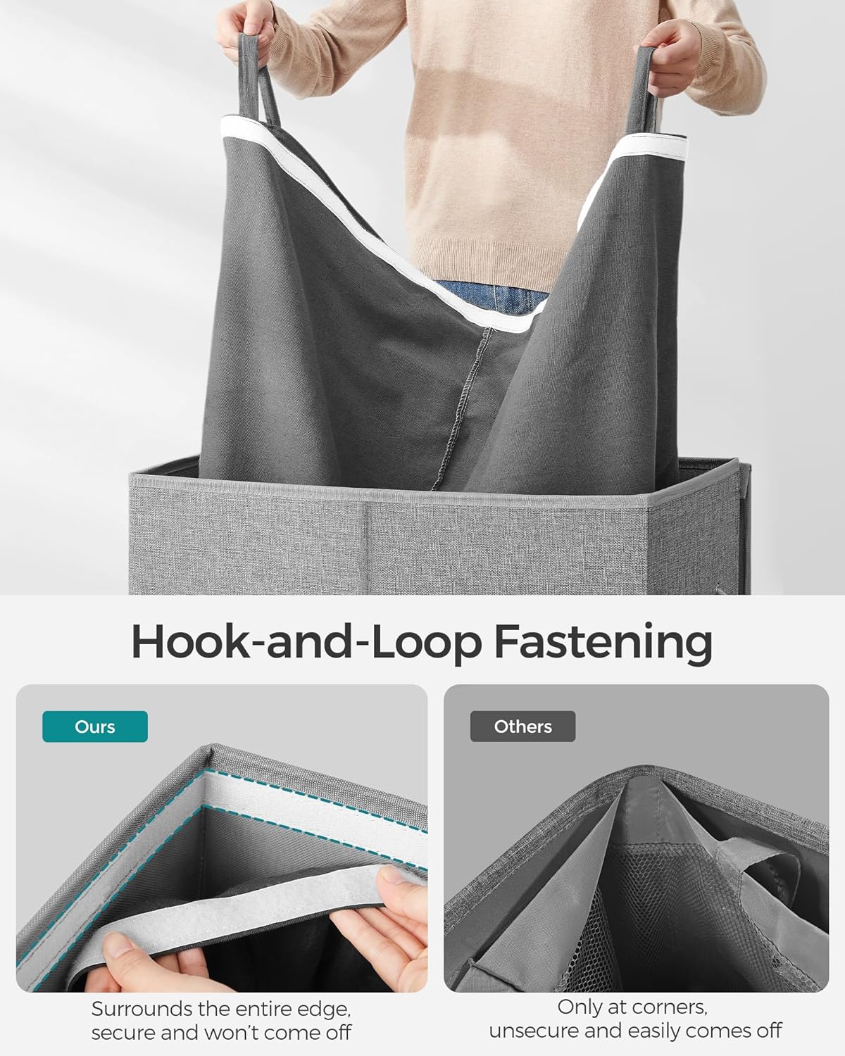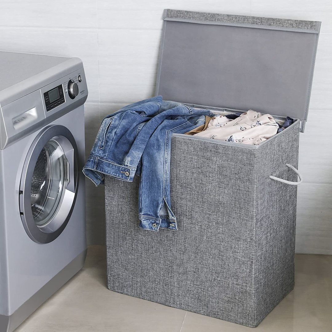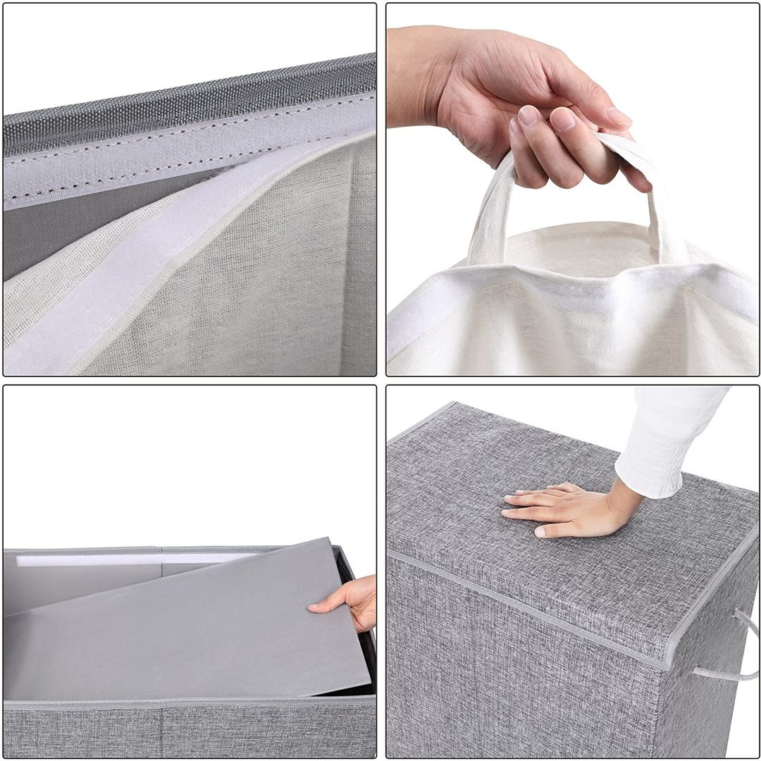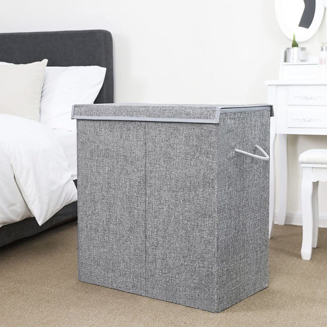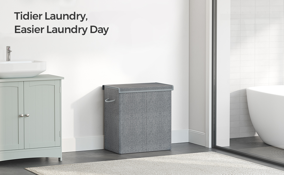 Specificatii: Culoare: Gri Material: Tesatura Linenette, MDF (placi de fibre de densitate medie), bumbac, tesatura netesuta Dimensiunea produsului: 60 x 36 x 66 cm (L x l x a) Greutatea produsului: 4,9 kg Max. Capacitate de incarcare statica: 20 kg Despre acest articol Acest cos de rufe are o capacitate mare de 142 L, capabil sa tina o cantitate considerabila de haine murdare, lenjerie de pat, perne si multe altele. Dispune 2 compartimente, ceea ce faciliteaza sortarea rufelor deschise de cele negre.Acest cos de rufe are un capac magnetic pentru deschidere si inchidere usoara, cu o singura mana, previne mirosurile neplacute si va protejeaza rufele de praf. Fabricat din placa MDF rezistenta, poate sustine pana la 20 kg.Captuseala groasa din polibuton de 160 g/m² a cosului de rufe este durabila pentru utilizare pe termen lung si poate fi indepartata cu usurinta. Se spala manual sau la masina pentru a asigura igiena.Cosul de spalat are manere puternice si durabile din franghie de bumbac pe ambele parti, facandu-l confortabil de transportat. Puteti muta usor si confortabil cosul in spalatorie si inapoi.Asamblarea cosului de rufe este simpla cu instructiunile incluse. Cand nu este folosit sau in timpul transportului, pliati pur si simplu cosul pentru a economisi spatiu.