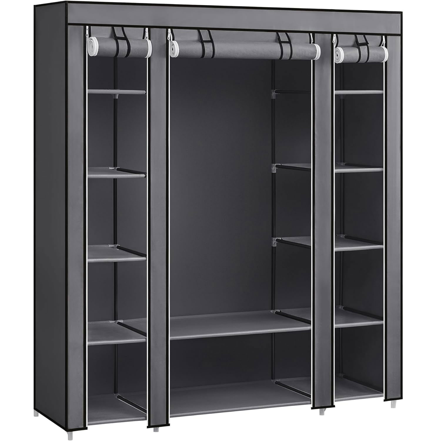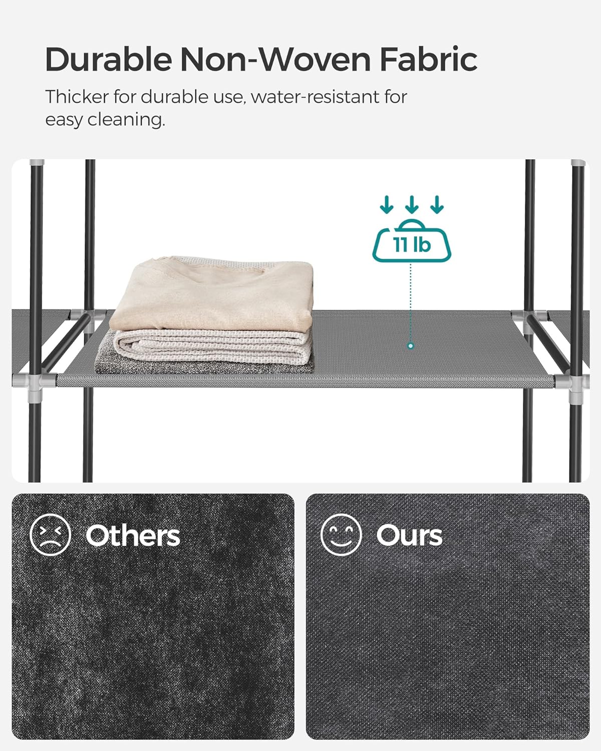 SONGMICS Garderoba din material textil, dulap portabil, cu rafturi si sina de agatat, 150x45x175cm, gri