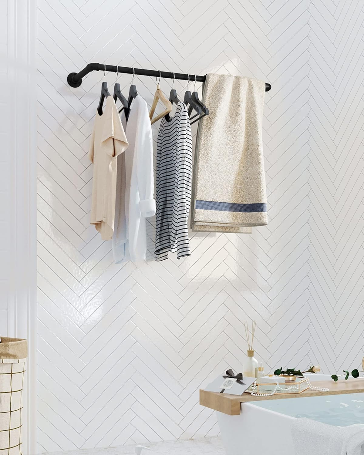 Specificatii: Culoare: Negru Material: otel Dimensiunea produsului pentru fiecare rack: 92 x 30 x 7,5 cm (L x l x H) Greutatea produsului a fiecarui rack: 1,3 kg Max. Capacitate de incarcare statica per tija cand este montat pe pereti din caramida solida sau beton: 60 kg Max. Capacitate de sarcina statica per tija cand este montat pe pereti din lemn: 45 kg Continutul pachetului: 2 x suport pentru haine, 2 x geanta pentru accesorii, 1 x instructiuni Vrei sa aranjezi hainele ingramadite in garderoba sau esarfele dezordonate in sertar? Incercati acest set de 2 sine pentru haine SONGMICS ! Cu o lungime de 92 cm si un design montat pe perete, ele gazduiesc o multime de haine si accesorii economisind in acelasi timp spatiu in camera. 2x placi cu flansa de ancorare: Piesele de ancorare sudate la capat permit acestor bare de suspendare metalice sa ofere o rezistenta mare (sarcina statica maxima a fiecarei rafturi: 50 kg). 30 cm distanta fata de perete: Distanta mai mare impiedica umerasele sa intre in contact cu peretele, astfel incat sa puteti agata hainele si sa le scoateti cu usurinta. Asamblare fara probleme: Oferim ancore de perete si instructiuni usor de urmat pentru a face asamblarea ca o joaca de copii.
