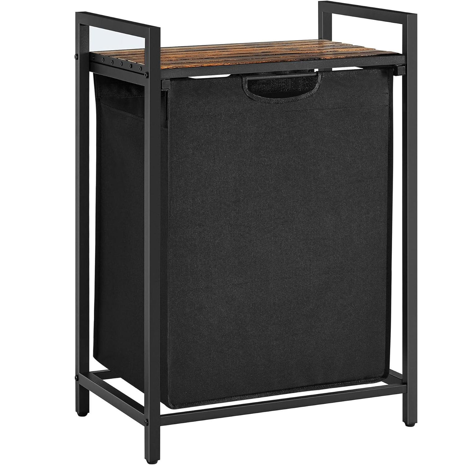 Dimensiunile produsului: 50L x 33W x 72H centimetri Marca: VASAGLE Culoare: Rustic Maro + Negru Material: Lemn prelucrat, otel aliat, plastic Stil: Rustic Despre acest articol Cos unic pentru spatii mici: Acest cos de rufe unic de 65 L poate tine o saptamana de rufe pentru o persoana. Masurand 50 x 33 x 72 cm, acest cos compact este perfect pentru a maximiza spatiile mici si colturile din baie, spalatorie sau dormitor. Raft de depozitare cu sipci: Acest cos de rufe are un raft, oferind spatiu suplimentar pentru a organiza detergentii sau articolele de toaleta. Designul sau cu sipci permite aerului sa circule pentru o buna ventilatie, prevenind acumularea de mirosuri de la rufe Captuseala extrasa si detasabila: Captuseala este echipata cu un panou inferior din plastic pentru a preveni caderea si, datorita dispozitivului de fixare cu carlig si bucla, puteti scoate si indeparta fara efort captuseala pentru a o transporta cu usurinta la masina de spalat.Fabricat cu un cadru din tub de otel de 2 cm si panou MDF, acest cos de rufe suporta pana la 20 kg pe raftul superior. In plus, captuseala este confectionata din material Oxford hidrofug, iar cele patru picioare reglabile asigura stabilitate Versatil: Acest cos de rufe versatil se potriveste perfect in orice camera, fie ca este vorba de spalatorie, baie sau dormitor. Folositi-l pentru a va organiza rufele oriunde aveti nevoie de spatiu suplimentar.