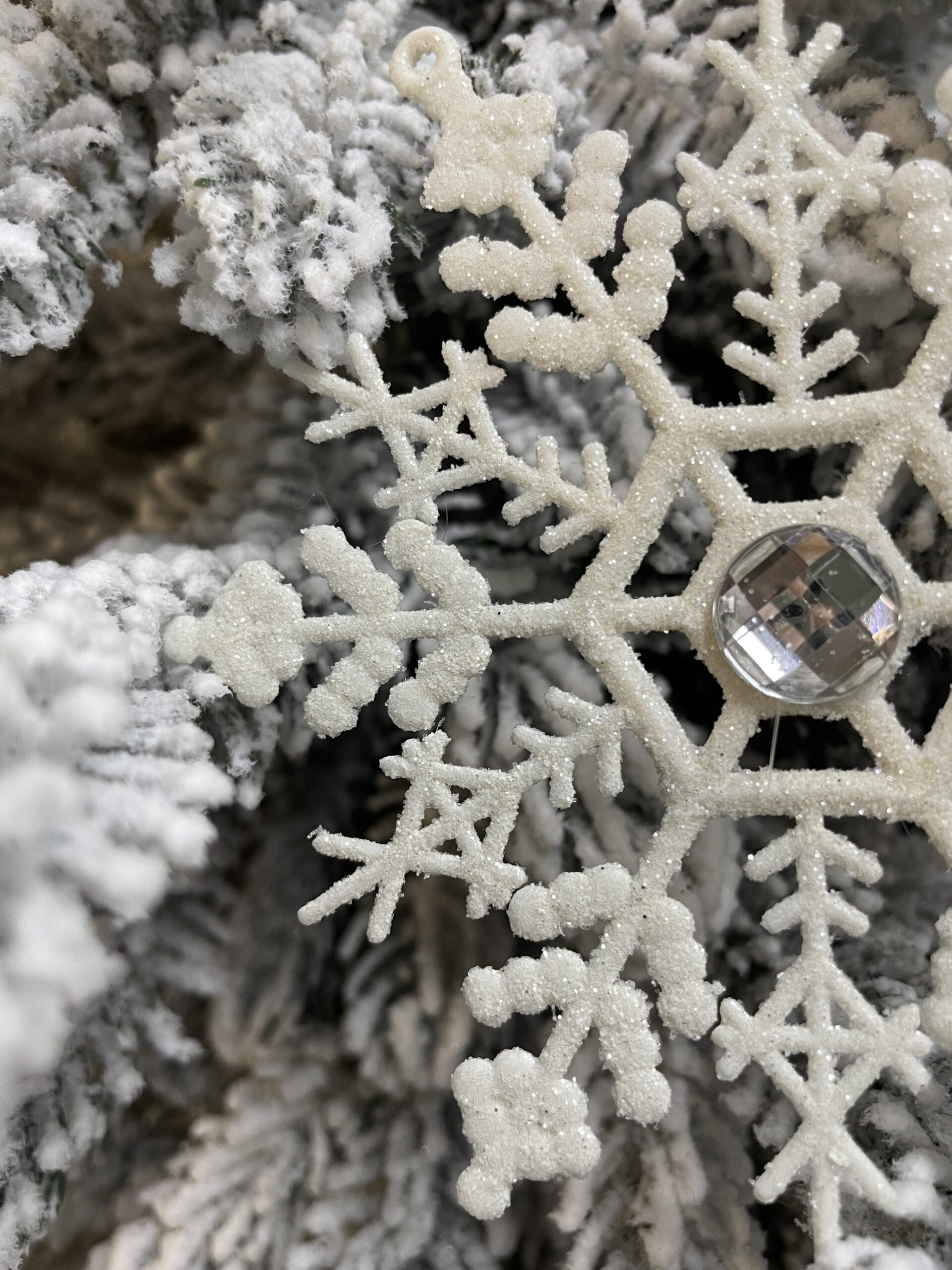 Decoratiune brad fulg de zapada cu cristal, set 2 bucati, 12cm, alb