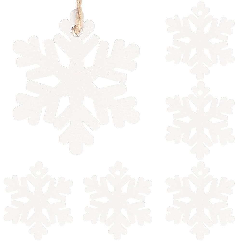 Decoratiune brad fulg de zapada din lemn, set 6 bucati, 4cm, alb