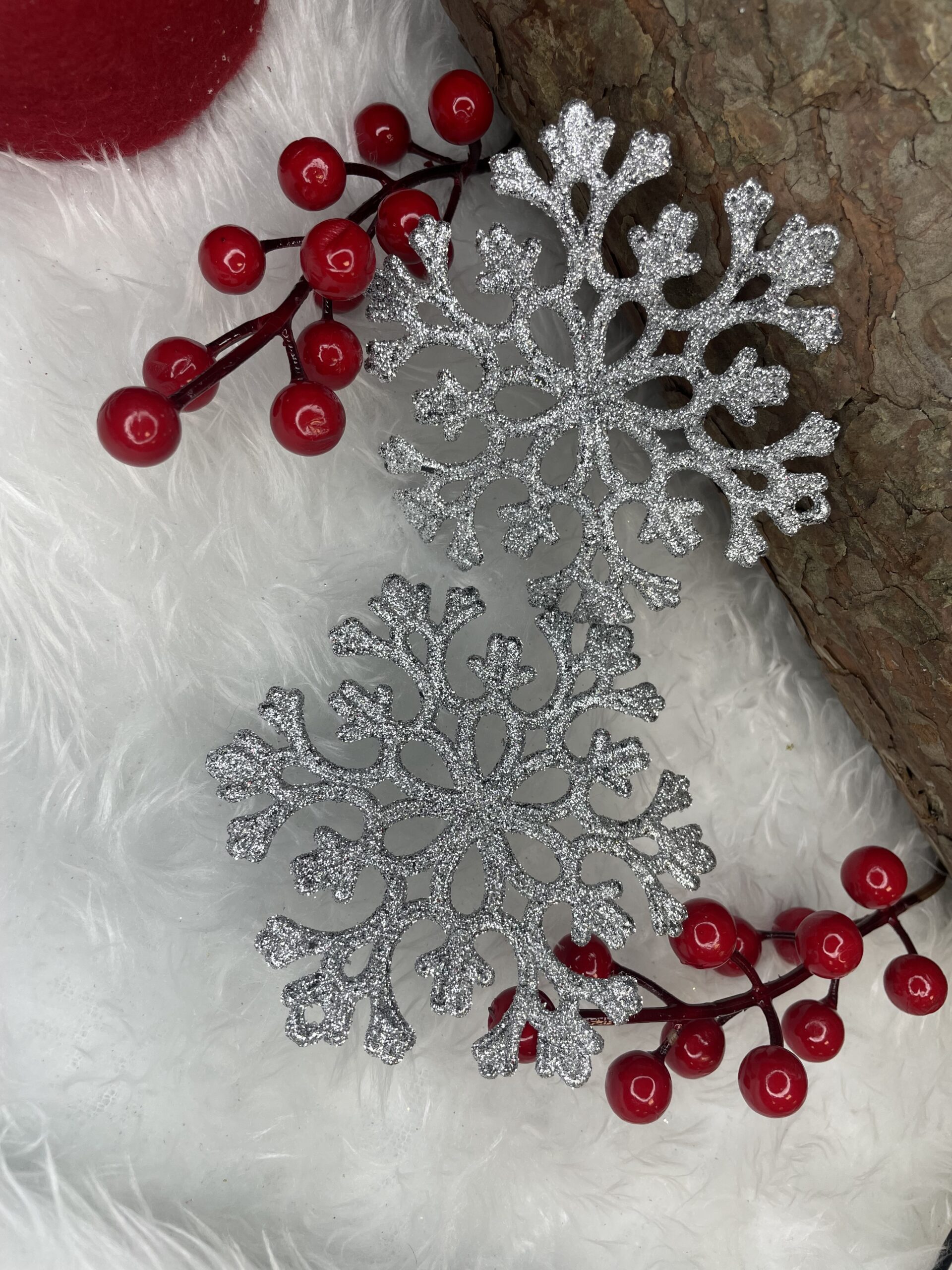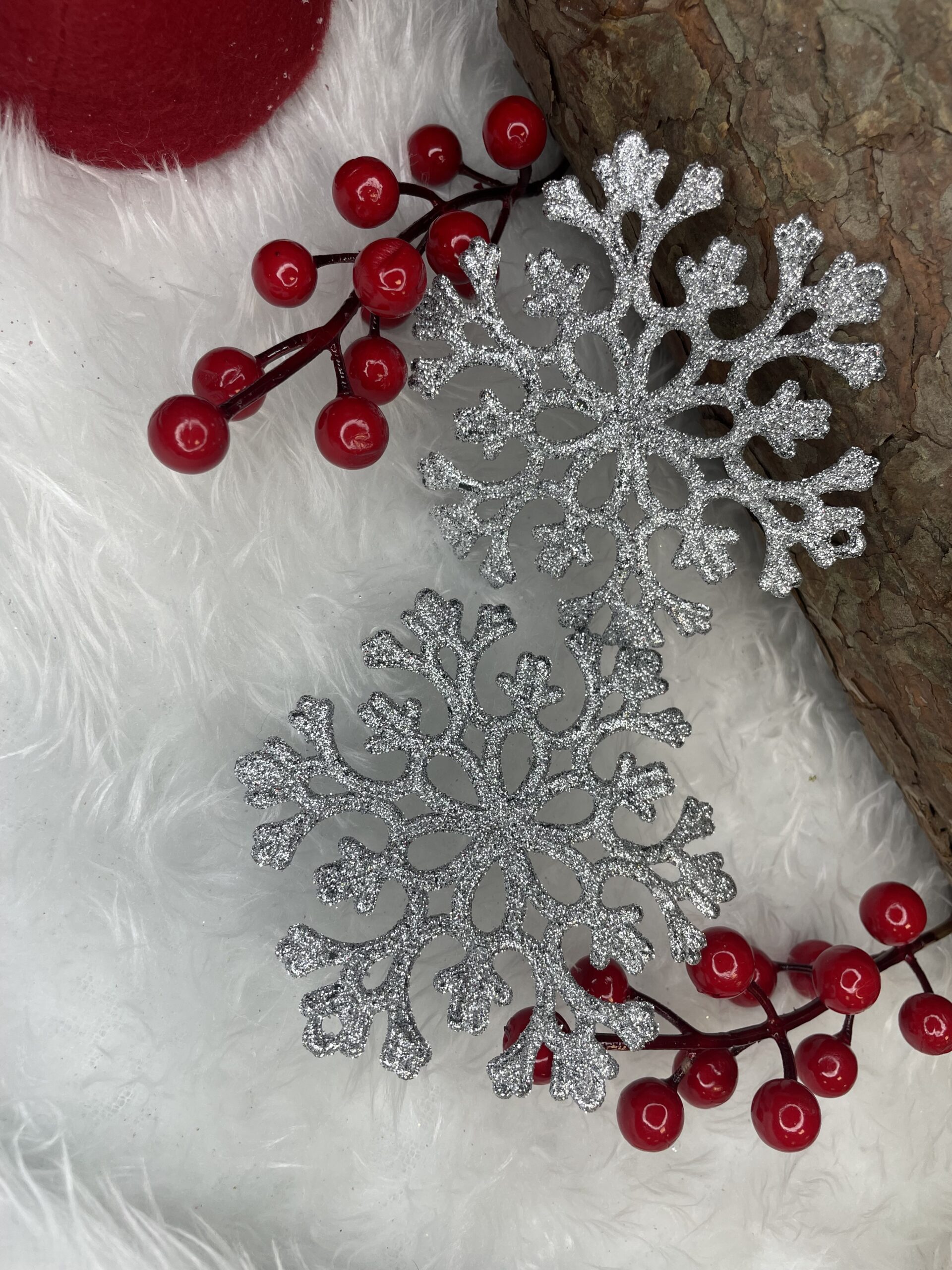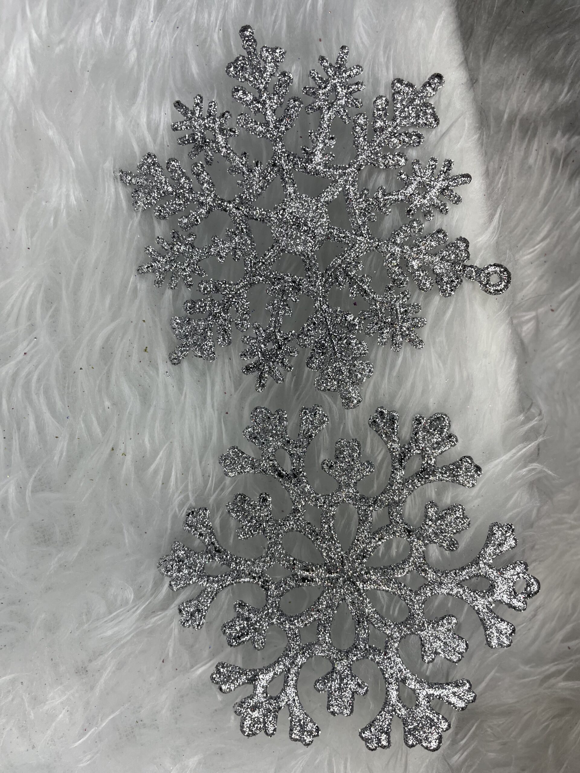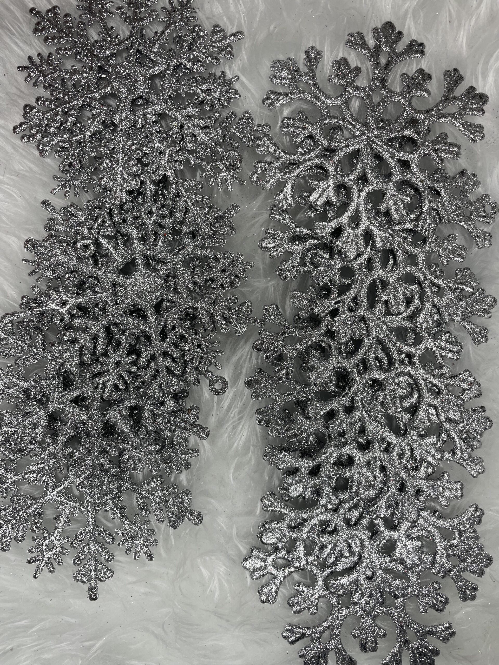 Material: PP Diametru: 10 cm Numar pe pachet: 12 bucati Numar de modele: 2 Finisaj: sclipici Culoare: argintiu Craciunul, ca si intreaga perioada de iarna, este o perioada magica, plina de caldura si de o atmosfera unica, creata datorita unui spectacol de decoratiuni fabuloase si constelatii luminoase incantatoare. Pandantivele frumoase in forma de fulgi de zapada va vor decora frumos bradul de Craciun. Setul este format din 12 fulgi de zapada cu decupaje frumoase. Pandantivele sunt insotite de o sfoara pentru a le agata pe crengile bradului de Craciun. Realizat cu grija - cu atentie la cel mai mic detaliu Vine cu o sfoara decorativa - nu trebuie sa va faceti griji cu privire la problemele de agatat Indestructibil - sigur pentru casele cu copii si animale de companie Finisaj cu sclipici - un aspect unic Copiii care adora sa impodobeasca bradul, precum si o pisica care vaneaza cu insistenta un brad de Craciun, se vor putea bucura de aceasta perioada speciala fara teama de a se rani. Vei ramane calm chiar daca unul dintre pandantivele noastre iti cade din maini.