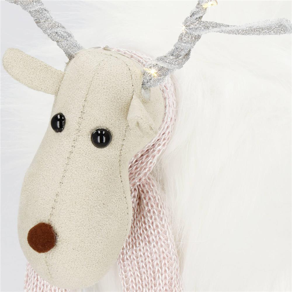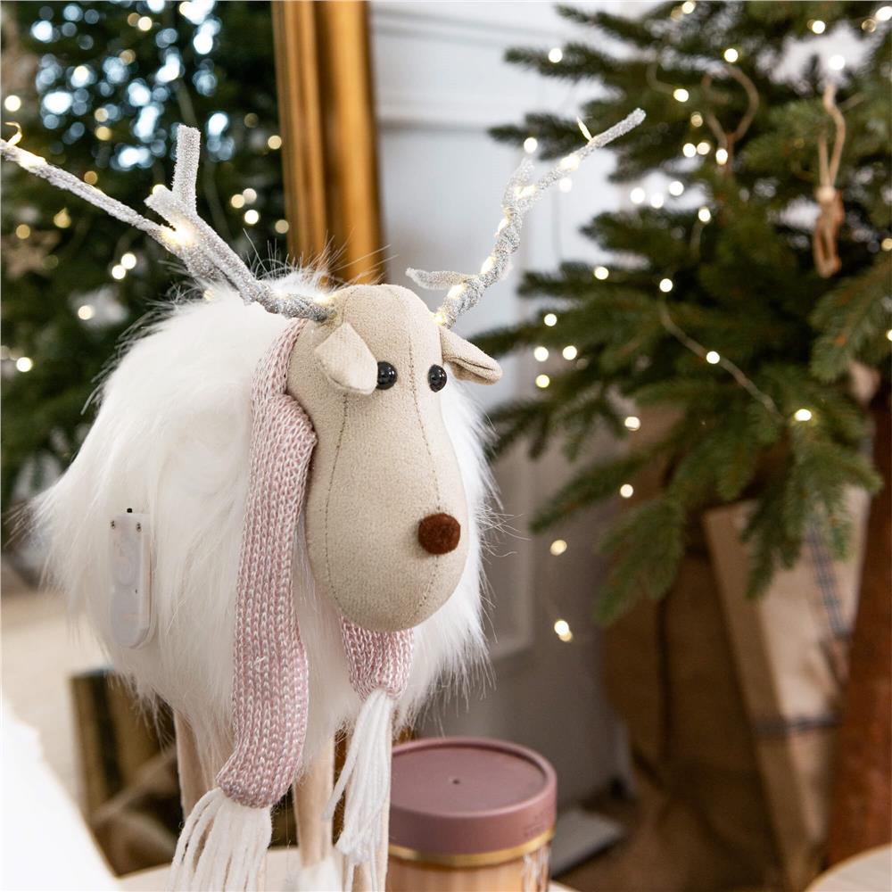 Inaltime totala: aproximativ 48 cm Latime totala: aproximativ 15 cm Lungime totala: 24 cm Material: stofa Coarne de ren: impletite cu fire micro LED Numar de LED-uri: 14 Culoare LED: alb cald Alimentare: baterie, 2xCR2032 (inclusa) Figurina de Craciun este un decor fermecator pentru casa sau apartamentul tau de Craciun. Creati o atmosfera fermecatoare de Craciun in orice interior asezand aceasta figurina minunata sub bradul de Craciun, pe semineul din sufragerie, pe pervazul ferestrei sau pe biroul din camera copiilor. Este tusa finala perfecta pentru designul interior in timpul sarbatorilor din decembrie. Culori frumoase si design captivant Material placut la atingere Posibilitatea de a amplasa decorul in orice incapere - acasa, in companie Colturi iluminate atmosferic cu fire LED alimentate de baterii Aceasta silueta captivanta va aduce o dispozitie incantatoare de magie si o atmosfera unica de Craciun in casa ta, va decora fiecare camera - nu numai pentru copii - si te va ajuta sa te relaxezi si sa inspiri optimism.