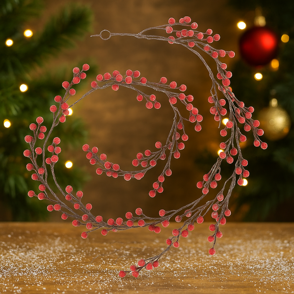 Ghirlanda decorativa cu fructe rosii, 190 cm, rosu