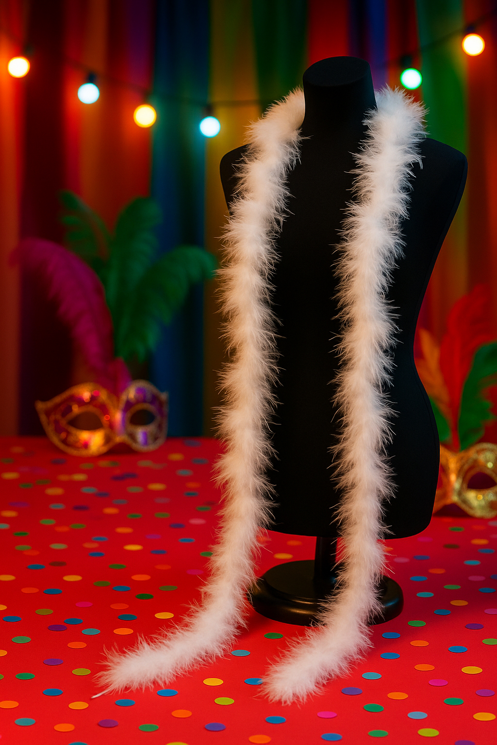 Specificatii tehnice Material: Bumbac, pene Dimensiuni produs: L.200 x D.5 cm Culoare: Alb Utilizare: Decor festiv, petreceri, costume, evenimente Scurta descriere Boa decorativ din pene fine si bumbac, alb, cu lungimea de 2 metri. Un accesoriu elegant si versatil, ideal pentru petreceri, carnavaluri, decoruri festive sau tinute tematice. Caracteristici principale Fabricat din pene si bumbac pentru un aspect delicat Culoare alba, usor de asortat la diverse tinute si decoruri Lungime de 2 metri pentru efect vizual de impact Greutate foarte usoara, confortabil de purtat Accesoriu ideal pentru petreceri, spectacole sau decoratiuni