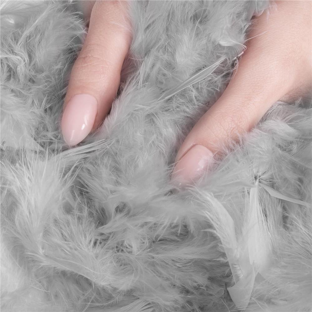 ATENTIE: Aceasta ghirlanda este din pene naturale! Deoarece, prin natura lor, penele sunt fragile, la manipularea ghirlandei pot cadea fragmente de puf. Acest lucru este unul normal si inevitabil ce trebuie luat in considerare inainte de a comanda acest produs! Material: pene naturaleCuloare: griLungime: aproximativ 180cmLatime aprox: 15cmPuful sau realizat din materiale naturale va garanta ca toata lumea va fi incantata de aceasta decoratiune deosebita. Pentru a face ghirlanda pufoasa, scoateti-o din pachet pentru cateva minute si atarnati-o. Acest lucru va face penele pufoase.