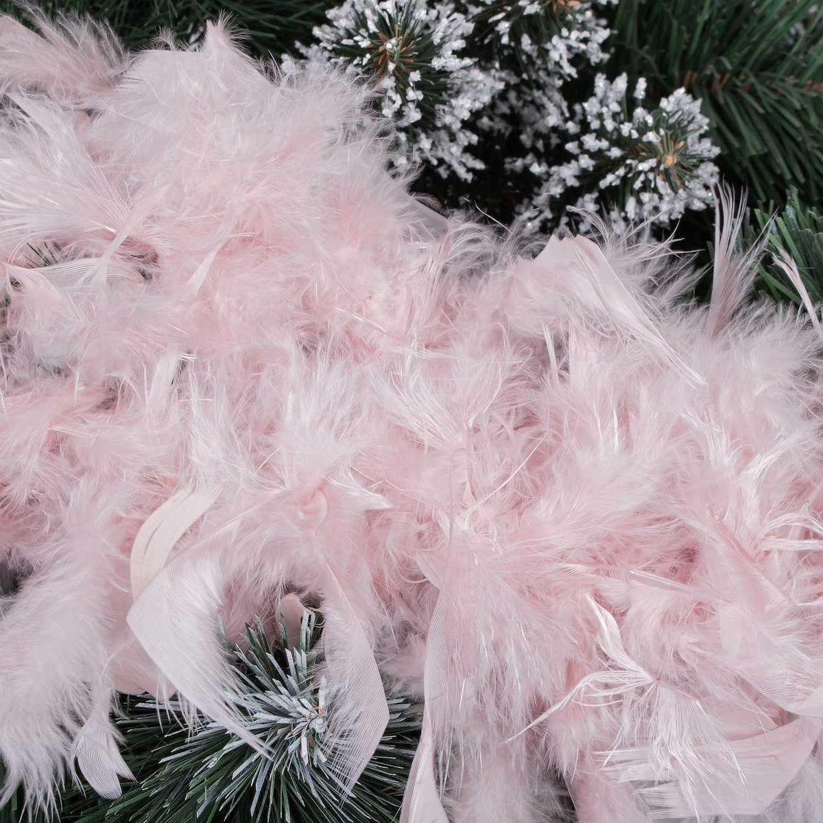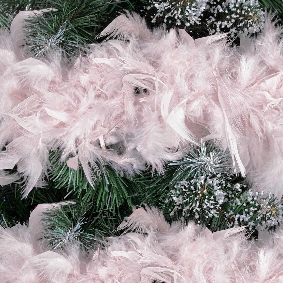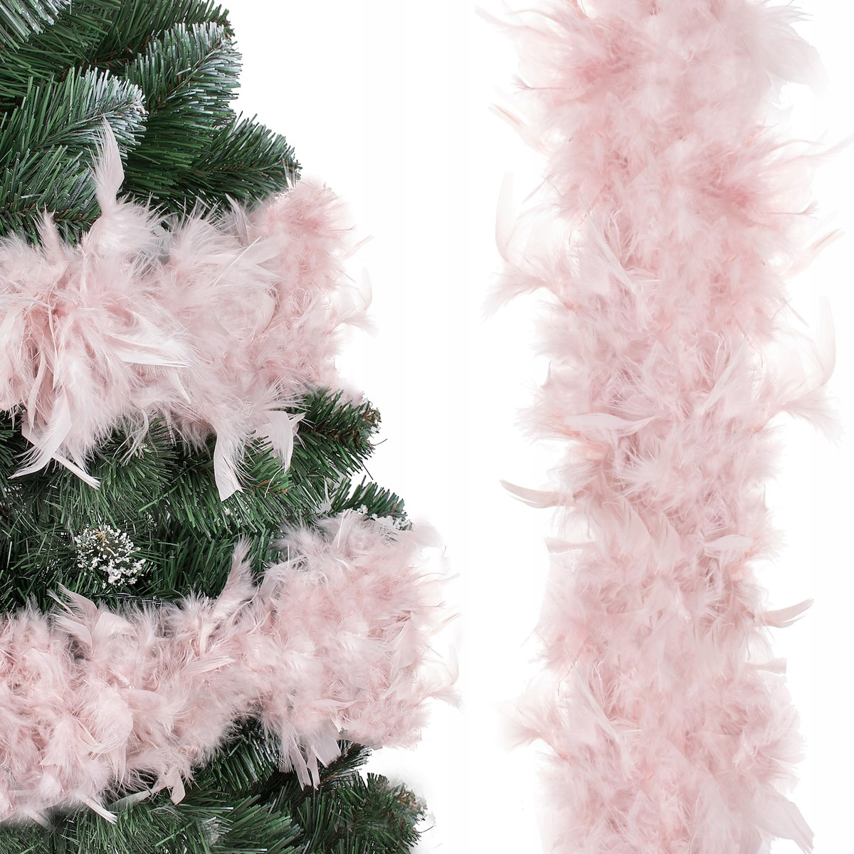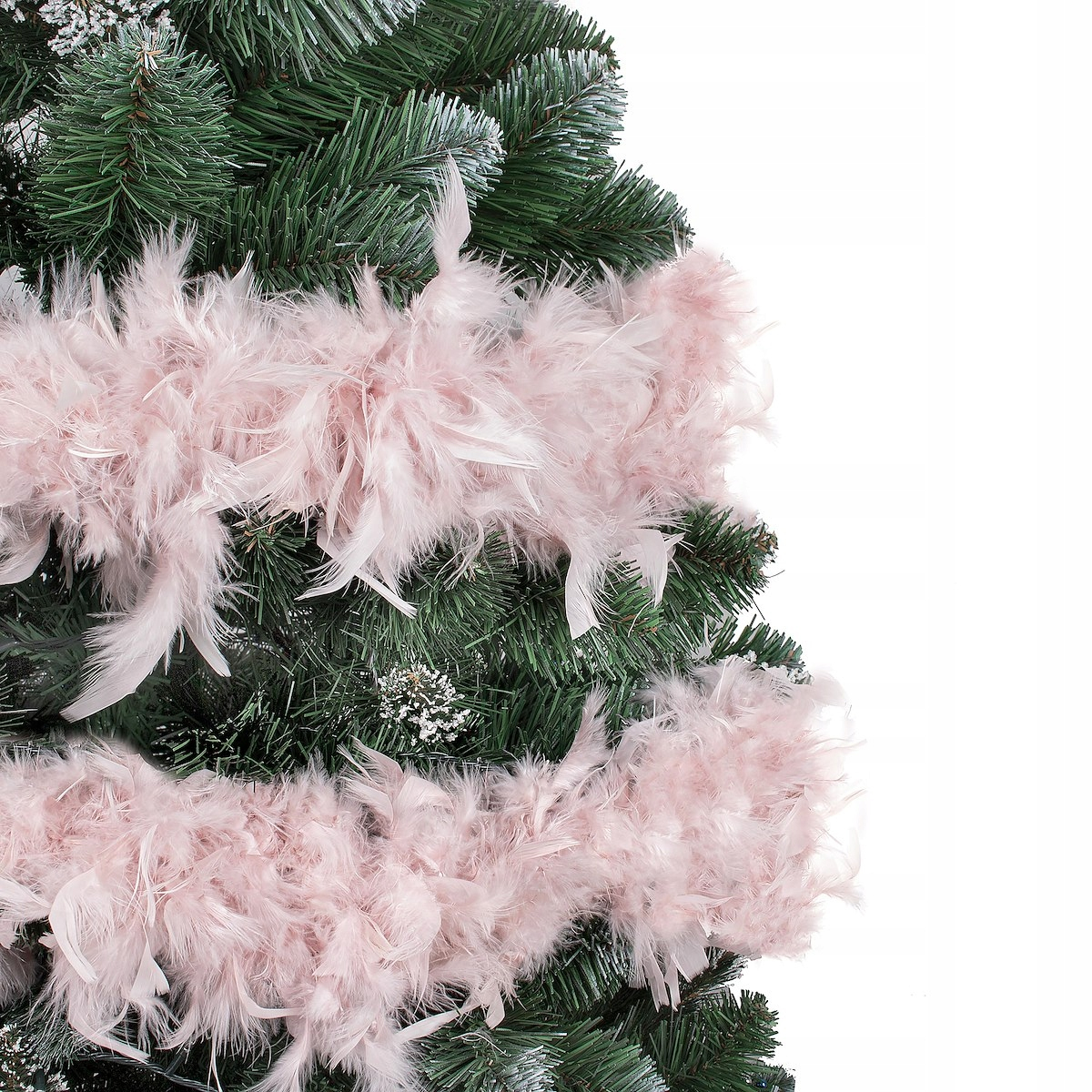 Ghirlanda pentru decor sau bradul de Craciun, model puf si pene, roz, 180cm