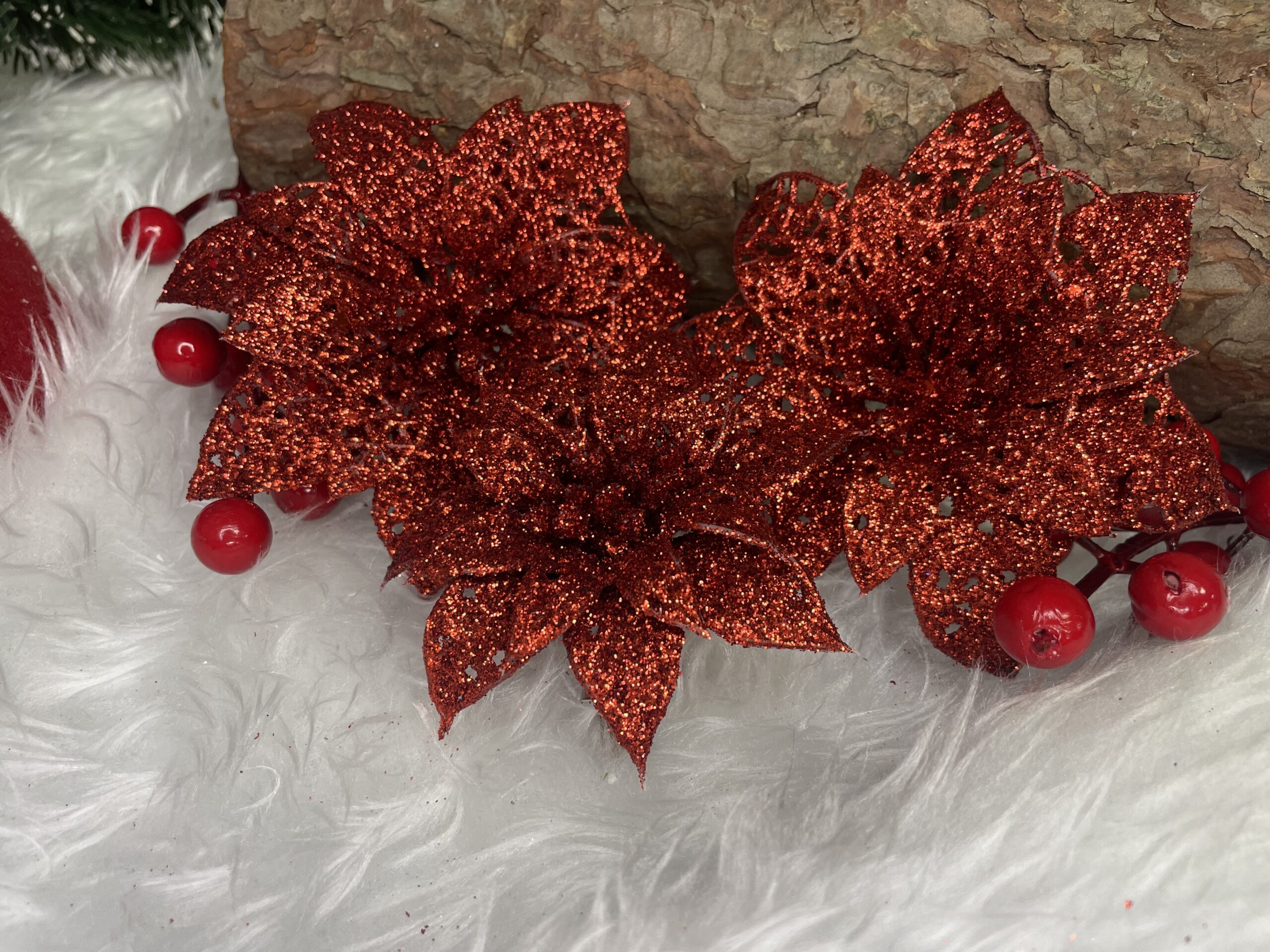 Poinsettia este cunoscuta in intreaga lume si este asociata cu Craciunul. Forma petalelor de poinsettia simbolizeaza steaua biblica a Betleemului, care a aparut adesea in casele noastre de ani de zile ca un decor unic pentru a infrumuseta sarbatoarea Craciunului In ciuda faptului ca este artificiala, poinsettia va incant familia cu farmecul sau. Arata fantastic ca decor pentru o coronita de Craciun. De asemenea, va functiona foarte bine ca floare pentru aranjamentele de masa de Craciun sau ca decorare a ghirlandei. Petalele Stelei de la Bethleem sunt atasate la o clema metalica, care poate fi prinsa rapid si usor de tesaturi si crengute, astfel incat le puteti aranja cu multa libertate. Lungimea diferita a petalelor ajurate face ca floarea mare sa fie mai vizibila si mai incantatoare. Nimeni nu va trece cu indiferenta pe langa el. Lasa-ti imaginatia sa zburde, iesi in evidenta si decoreaza-ti casa cu aceste flori fermecatoare pentru a crea decoratiuni de Craciun de neuitat si, mai ales, de neegalat! aspect realist - reproduce in mod remarcabil aspectul unei flori reale, simbolul Craciunului dimensiuni mari - petale impresionante care nu pot trece neobservate in compozitiile de Craciun materiale de cea mai buna calitate - petalele sunt realizate dintr-un material carnos care seamana cu o catifea usor lucioasa posibilitatea de a se atasa la ramuri - clema metalica multe utilizari - pentru camera, ghirlande sau pe pomul de Craciun finisaj lucios - materialul lucios va adauga stralucire si va decora totul pentru un efect uimitor, mai ales dupa lasarea intunericului PARAMETRI: Culoare: rosuNumar de bucati pe pachet: 10Dimensiune: 10x10 cmNumarul de petale: 14Lungimea petalelor: 3/4 cmLatimea petalelor: 1,5/2,5 cm