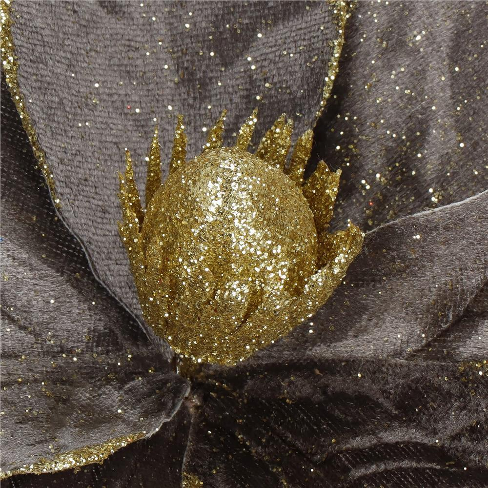Parametrii: Culoare: gri / auriu + sclipici Numar de petale: 8 Dimensiuni: Dimensiunea florii atunci cand este desfacuta aproximativ: 23 cm (diametru) Lungimea petalelor: aprox. 11 cm Latimea petalelor: aprox. 7 cm Grosimea tulpinii: 5 mm Grosimea petalelor: 1,5 mm Lungimea florii cu tulpina: 20 cm Lungimea tulpinii: 10 cm Grosimea tulpinii: 5,5 mm Poinsettia este cunoscuta in intreaga lume si este asociata cu Craciunul. Forma petalelor de poinsettia simbolizeaza steaua biblica a Betleemului, care a aparut adesea in casele noastre de ani de zile ca un decor unic pentru a infrumuseta sarbatoarea Craciunului In ciuda faptului ca este artificiala, poinsettia va incant familia cu farmecul sau. Arata fantastic ca decor pentru o coronita de Craciun. De asemenea, va functiona foarte bine ca floare pentru aranjamentele de masa de Craciun sau ca decorare a ghirlandei. Petalele Stelei de la Bethleem sunt atasate la o clema metalica, care poate fi prinsa rapid si usor de tesaturi si crengute, astfel incat le puteti aranja cu multa libertate. Lungimea diferita a petalelor ajurate face ca floarea mare sa fie mai vizibila si mai incantatoare. Nimeni nu va trece cu indiferenta pe langa el. Lasa-ti imaginatia sa zburde, iesi in evidenta si decoreaza-ti casa cu aceste flori fermecatoare pentru a crea decoratiuni de Craciun de neuitat si, mai ales, de neegalat! aspect realist – reproduce in mod remarcabil aspectul unei flori reale, simbolul Craciunului dimensiuni mari – petale impresionante care nu pot trece neobservate in compozitiile de Craciun materiale de cea mai buna calitate – petalele sunt realizate dintr-un material carnos care seamana cu o catifea usor lucioasa posibilitatea de a se atasa la ramuri – clema metalica multe utilizari – pentru camera, ghirlande sau pe pomul de Craciun finisaj lucios – materialul lucios va adauga stralucire si va decora totul pentru un efect uimitor, mai ales dupa lasarea intunericului
