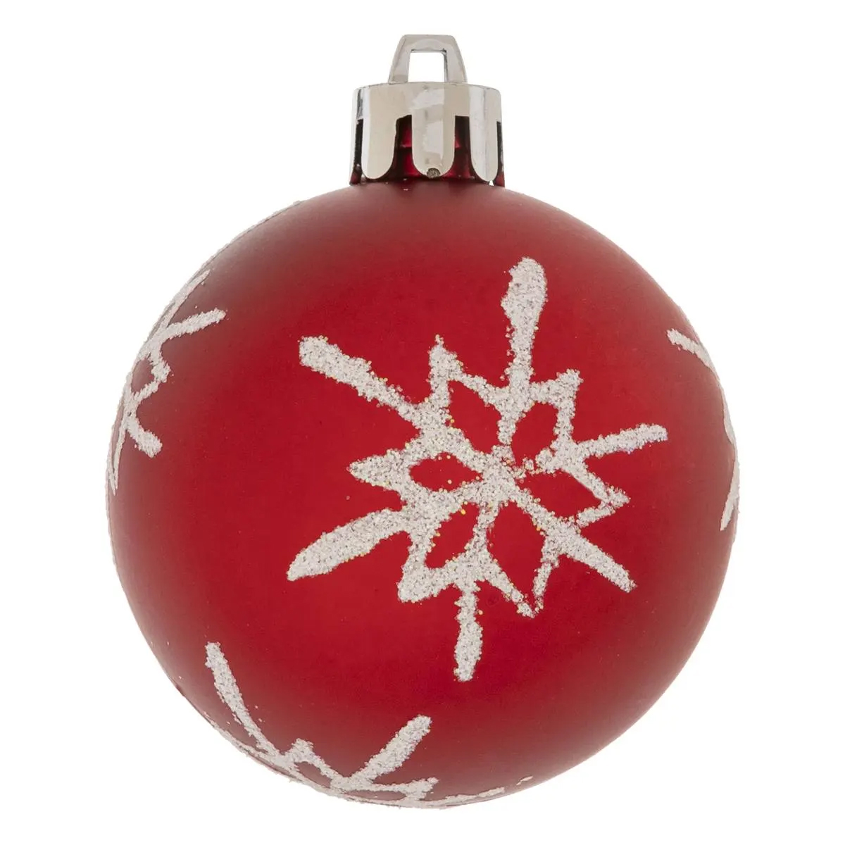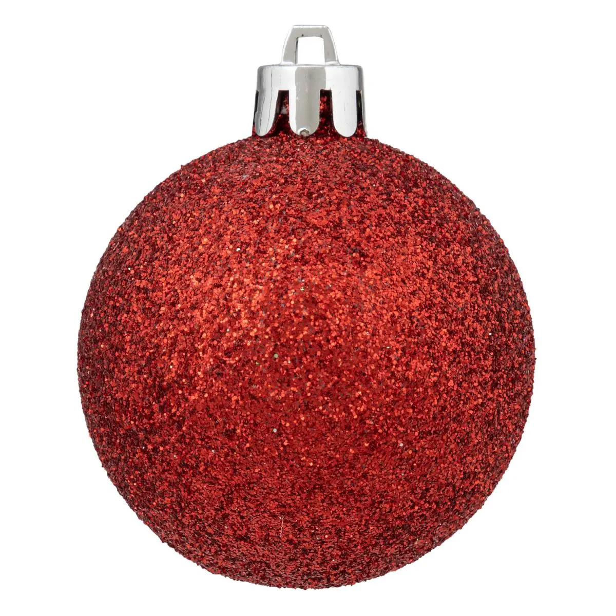 Set decoratiuni Craciun, 44 piese, cu globuri, ghirlanda si varf de brad, rosu si alb