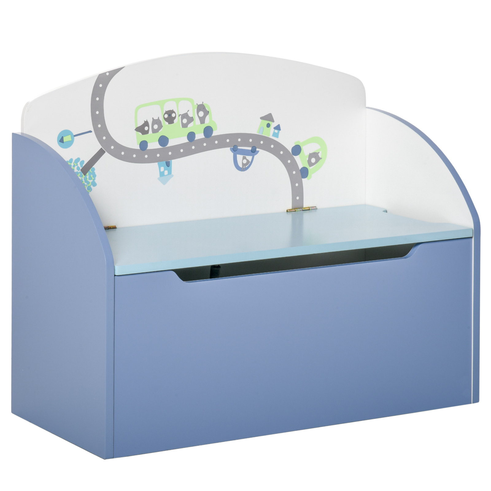 Pastreaza camera copilului organizata cu aceasta cutie de jucarii multifunctionala [BRAND NAME]. Poate fi folosita si ca banca de sezut, fiind ideala pentru citit sau joaca. Fabricata din lemn durabil, are colturi rotunjite pentru siguranta si un capac cu sistem anti-pinch. Culoarea albastra vesela o face atractiva pentru copii, iar spatiul generos din interior este perfect pentru jucarii, carti sau accesorii.