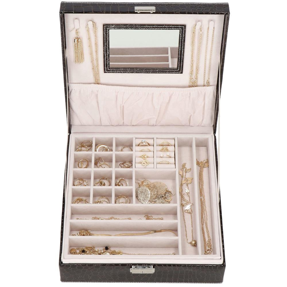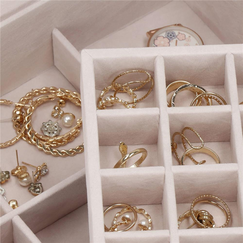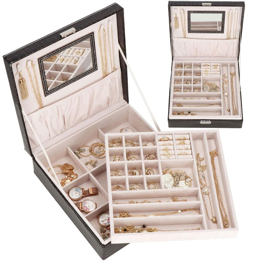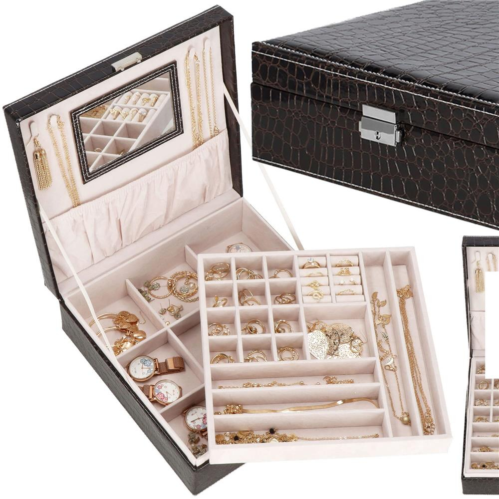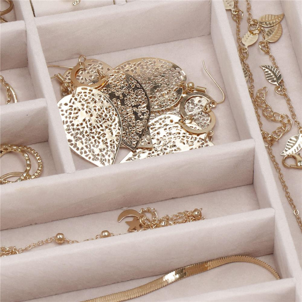 Cutia de bijuterii va va permite sa va organizati corespunzator locul pentru accesoriile de styling. Isi va gasi locul intr-un dulap, pe o masuta de toaleta sau pe o comoda. Avand toate bijuteriile preferate intr-un singur loc, puteti uita de cautarea unui alt cercel care s-a pierdut pe undeva sau sa desfaci colierul. Atunci cand plecati intr-o calatorie lunga, merita sa va echipati cu un organizator de bijuterii, astfel incat sa nu se piarda nimic atunci cand despachetati. Datorita dimensiunii sale compacte, se va potrivi cu usurinta in bagajul dumneavoastra.