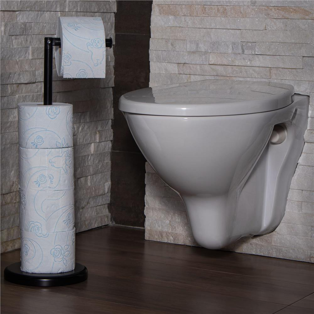 Sersimo Suport hartie igienica 2 in 1 cu tija mobila, 68.5cm, negru