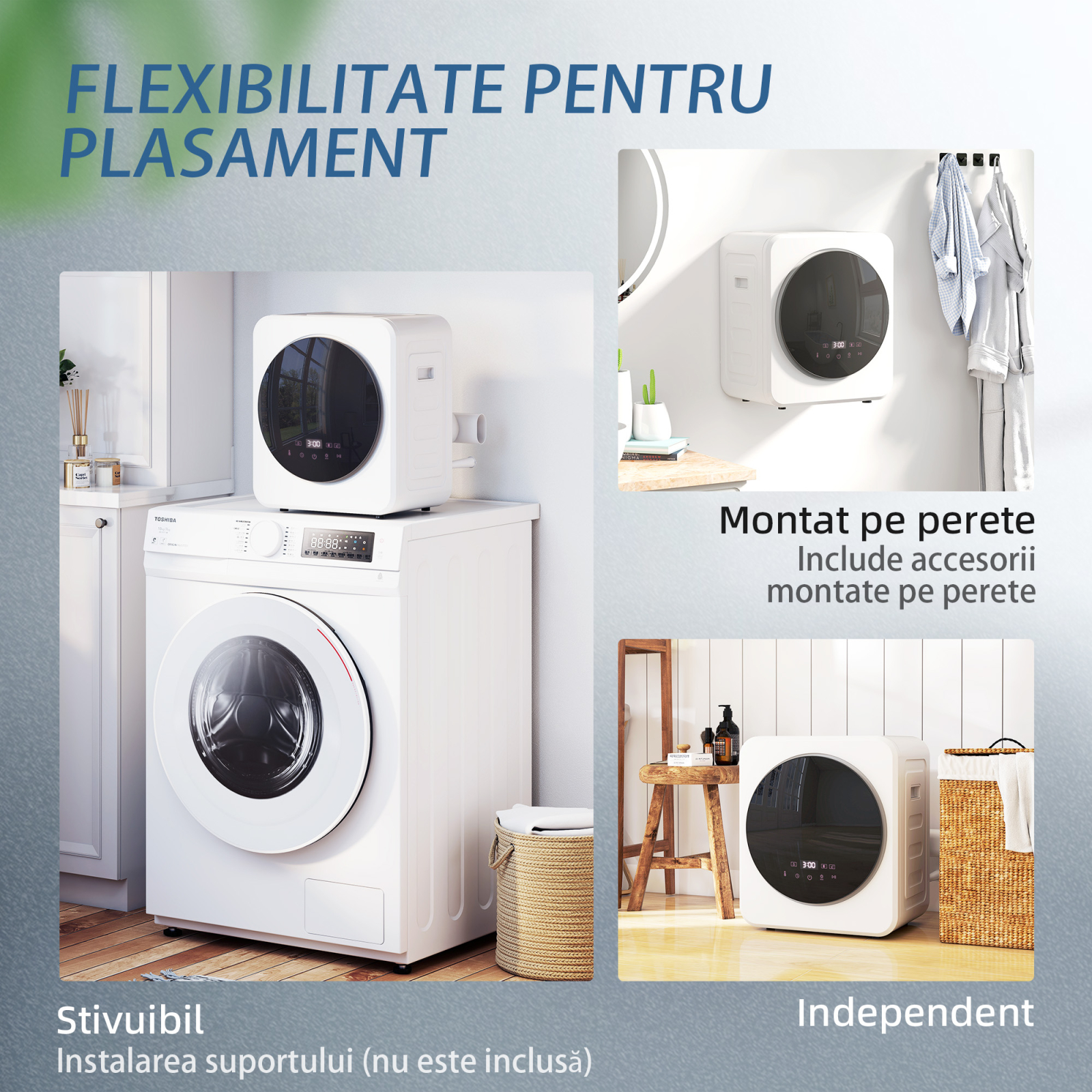 • INSTALARE FLEXIBILa sI ECONOMIE DE SPAtIU: Ideal pentru spatii mici, uscatorul portabil poate fi utilizat independent, suprapus pe masina de spalat prin suport sau montat pe perete pentru versatilitate.