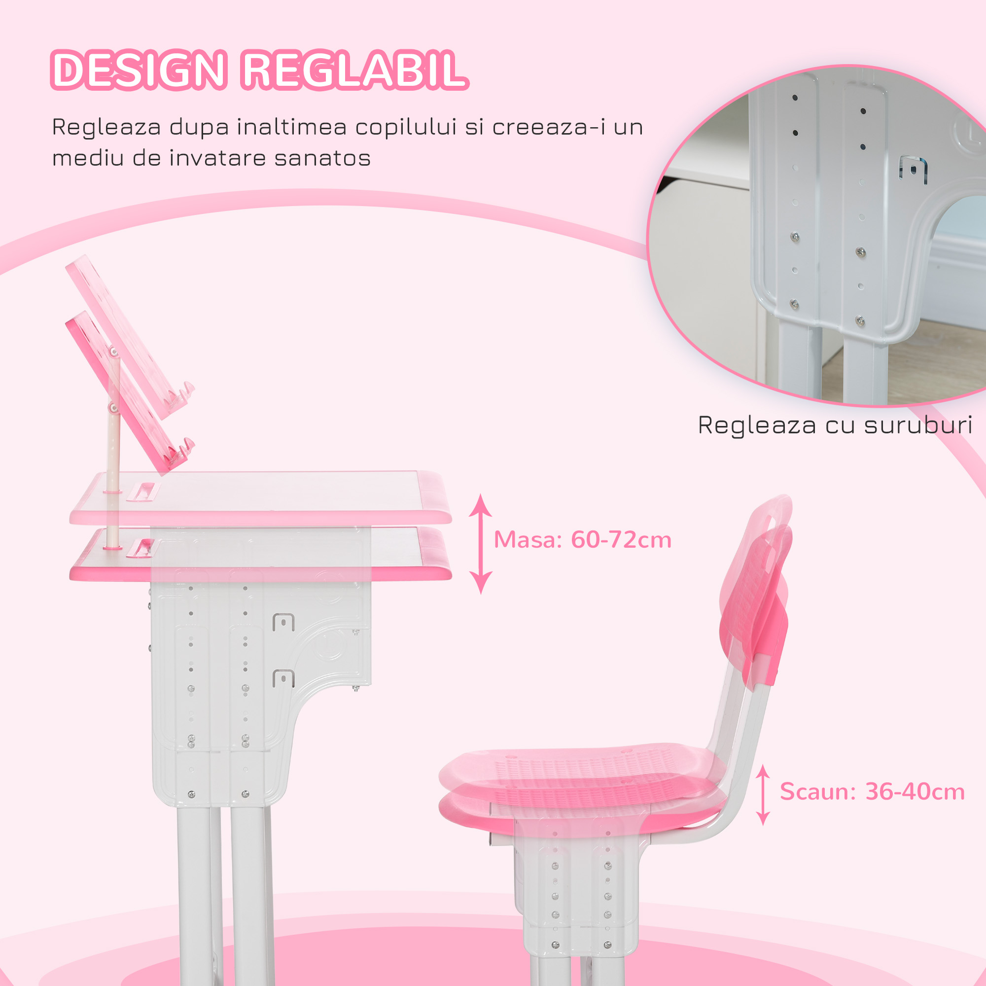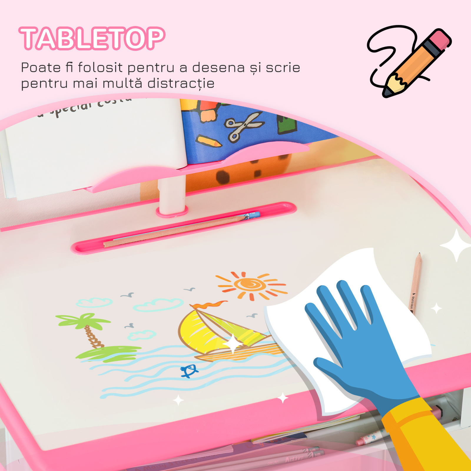 Setul cu banca si scaun pentru copii [BRAND NAME] este alegerea ideala pentru a face teme si a studia. Solid si sigur, setul are margini netede si rotunjite pentru a asigura maxima siguranta. Aceasta mica birou pentru copii si scaunul pot fi reglate pe inaltime pentru a tine pasul cu cresterea celor mici. Datorita designului simplu, se potriveste usor cu camera copiilor si cu mobilierul din casa.