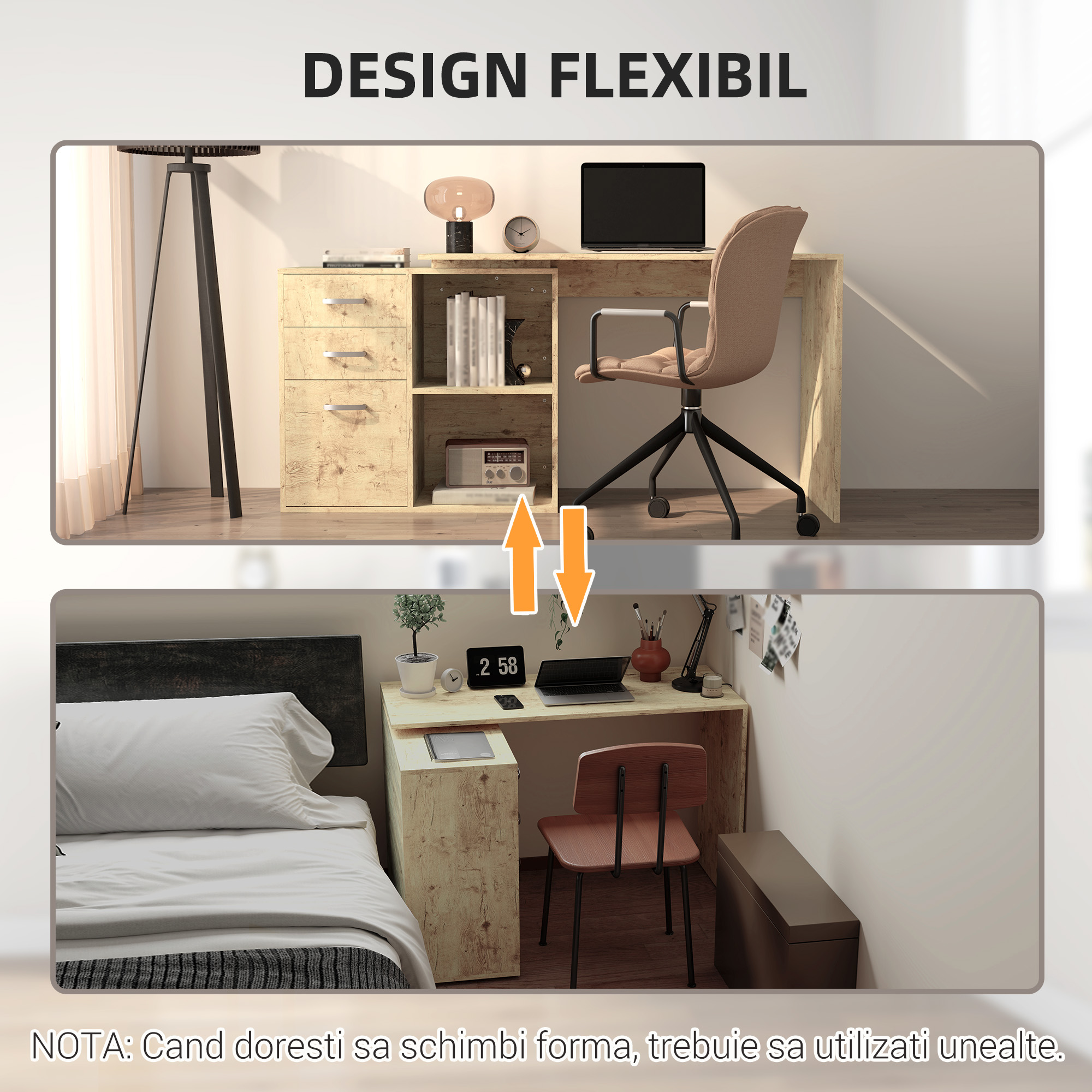 Biroul de colt [BRAND NAME] cu sertare si rafturi va fi aliatul tau ideal pentru a lucra intr-un mod profesional si concentrat. Blatul principal ofera un spatiu generos pe care il poti folosi pentru a aseza computerul si a lucra cu documentele tale. Blatul extensibil transforma linia biroului reglabil intr-o forma de "L" si, datorita sertarelor si rafturilor, iti permite sa pastrezi la indemana si in ordine tot ce ai nevoie.
