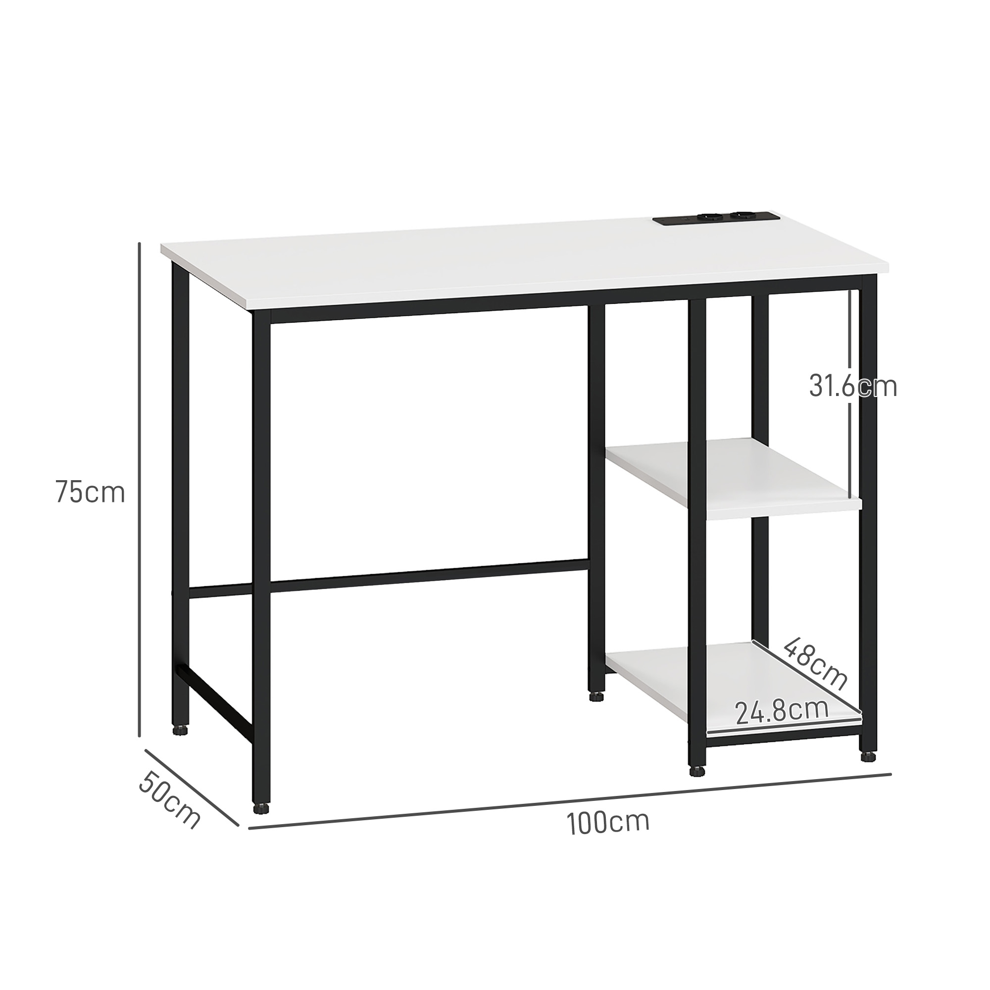 Creeaza un spatiu de lucru modern cu biroul [BRAND NAME] pentru computer, prevazut cu 2 rafturi reversibile pentru organizare si porturi USB integrate pentru incarcarea dispozitivelor. Cu dimensiuni de 100x50x75 cm, designul alb-negru se potriveste in birouri, dormitoare sau home office. Structura solida asigura stabilitate, iar functionalitatea suplimentara il face ideal pentru productivitate si organizare zilnica.