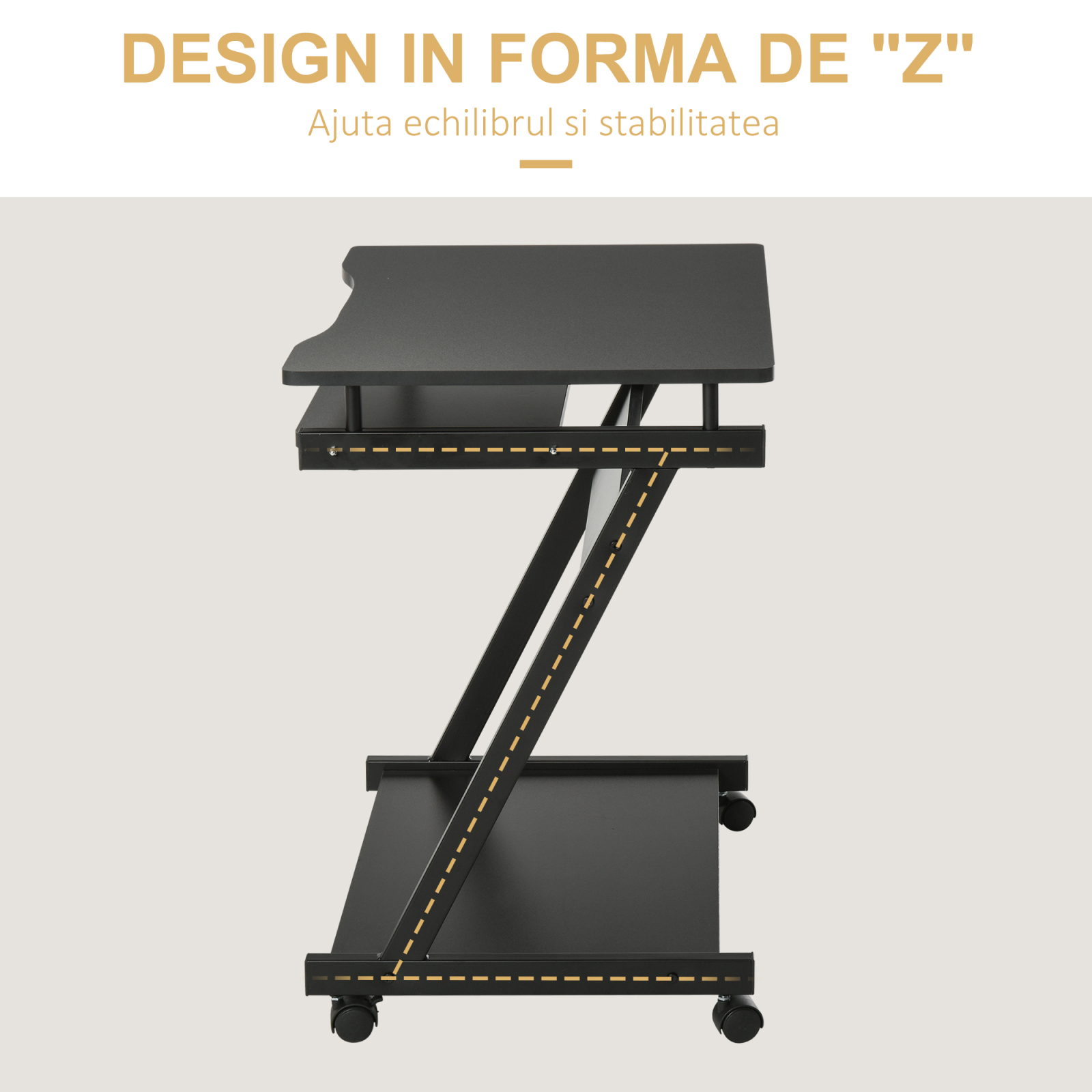 Cu un design minimalist care se imbina armonios cu orice decor, biroul compact [BRAND NAME] iti economiseste spatiu fara a compromite functionalitatea. Partea superioara retractabila pentru tastatura si raftul inferior iti ofera solutii inteligente de depozitare, in timp ce constructia robusta din metal si placi aglomerate iti asigura durabilitatea. Echipat cu rotite blocabile pentru flexibilitate si stabilitate in miscare, acest birou este ideal pentru tine.