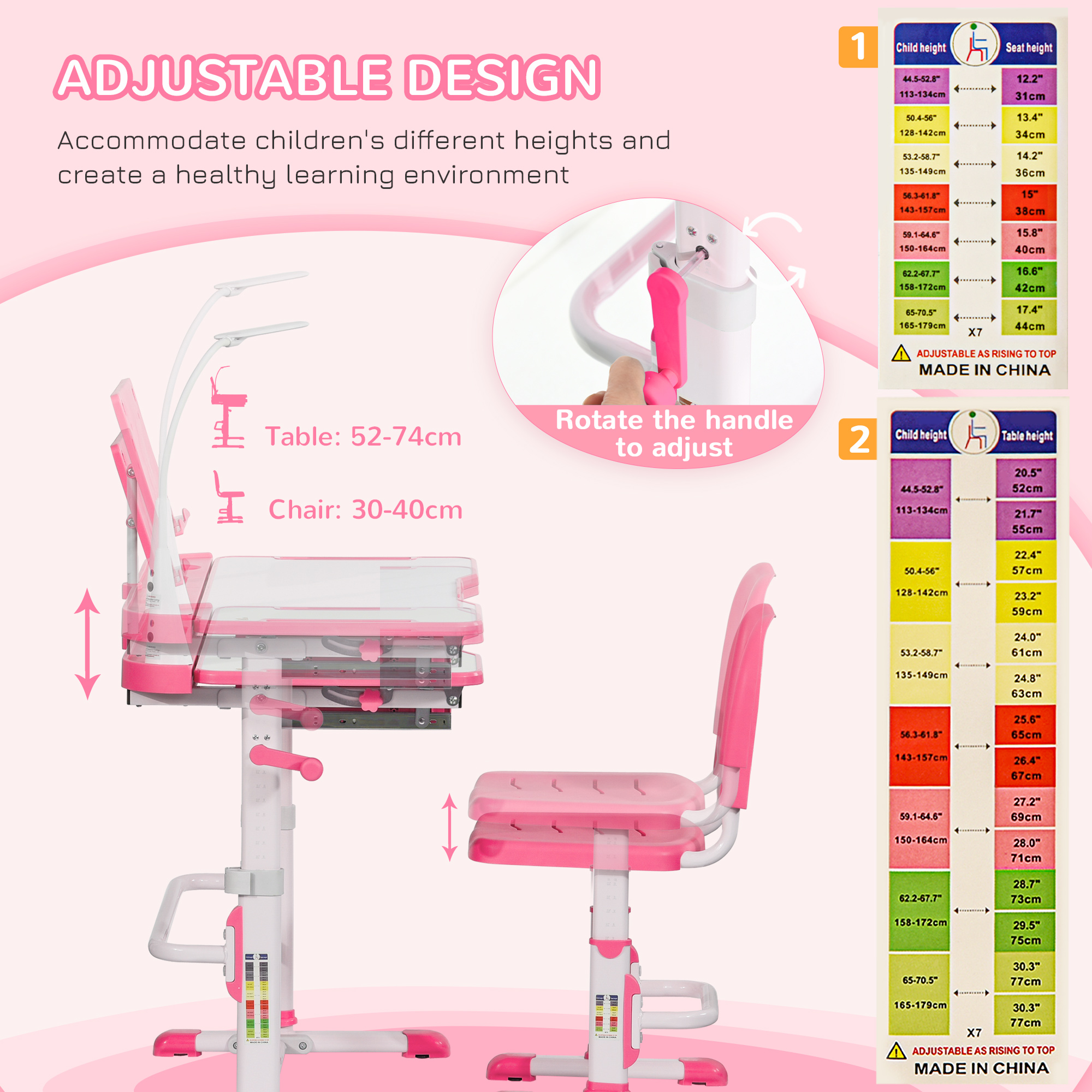 Banca scolara pentru copii [BRAND NAME] este solutia perfecta pentru a-ti ajuta micutii sa invete in cele mai bune conditii. Conceput sa creasca odata cu micii elevi, setul include un birou si un scaun pentru copii reglabile pe inaltime. Structura din otel si MDF asigura rezistenta, in timp ce suprafata de lucru inclinabila la 45° ajuta la mentinerea unei posturi corecte. Lumina integrata asigura o citire perfecta, iar sertarul ajuta la pastrarea ordinii.