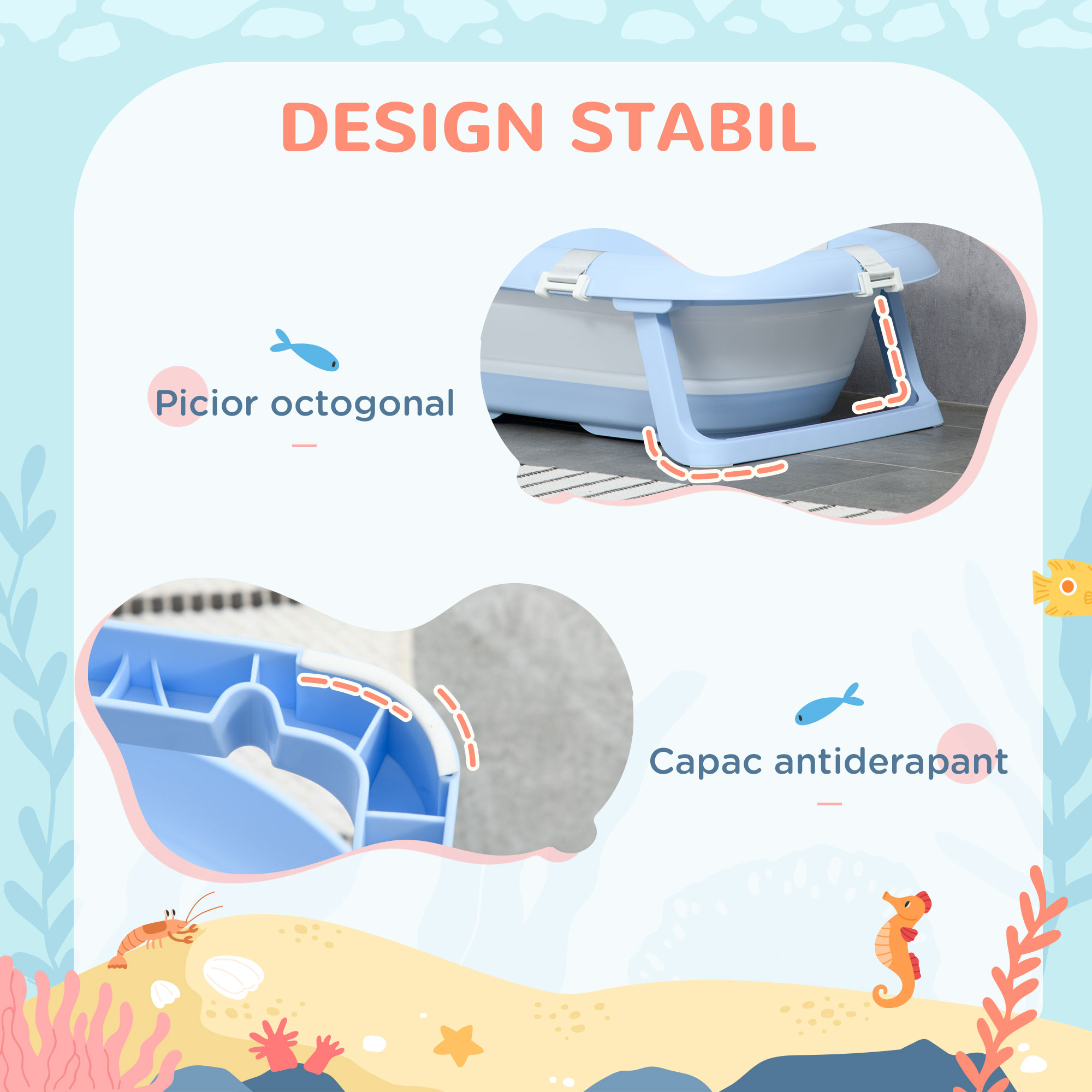 Fa baita mai usoara cu cadita [BRAND NAME] pliabila pentru copii intre 0-6 ani, echipata cu perna confortabila si 2 spatii de depozitare pentru accesorii. Constructia pliabila economiseste spatiu, iar materialele sigure asigura utilizare de lunga durata. Dimensiunile de 83x48x23,5 cm o fac practica pentru baie sau calatorii. Perfecta pentru siguranta si confortul bebelusilor.