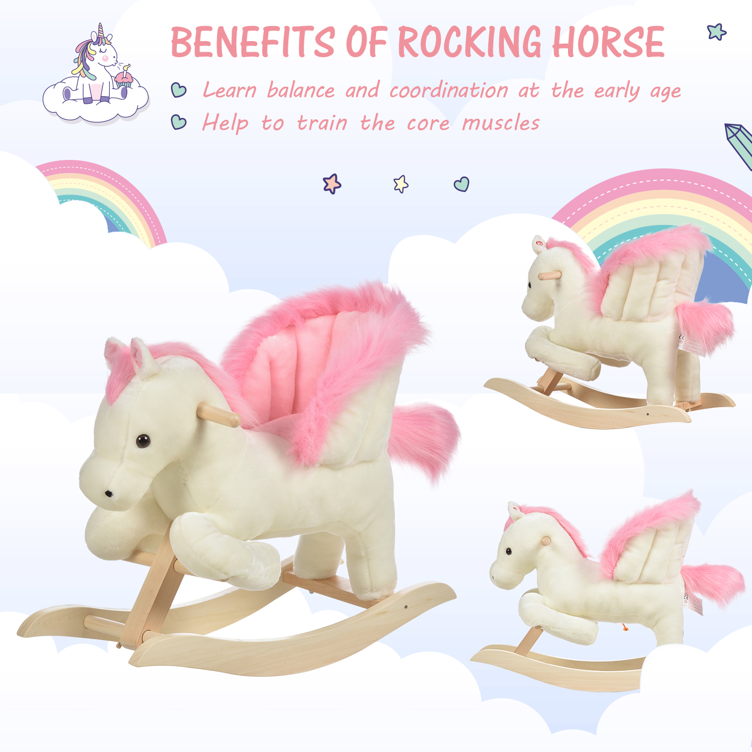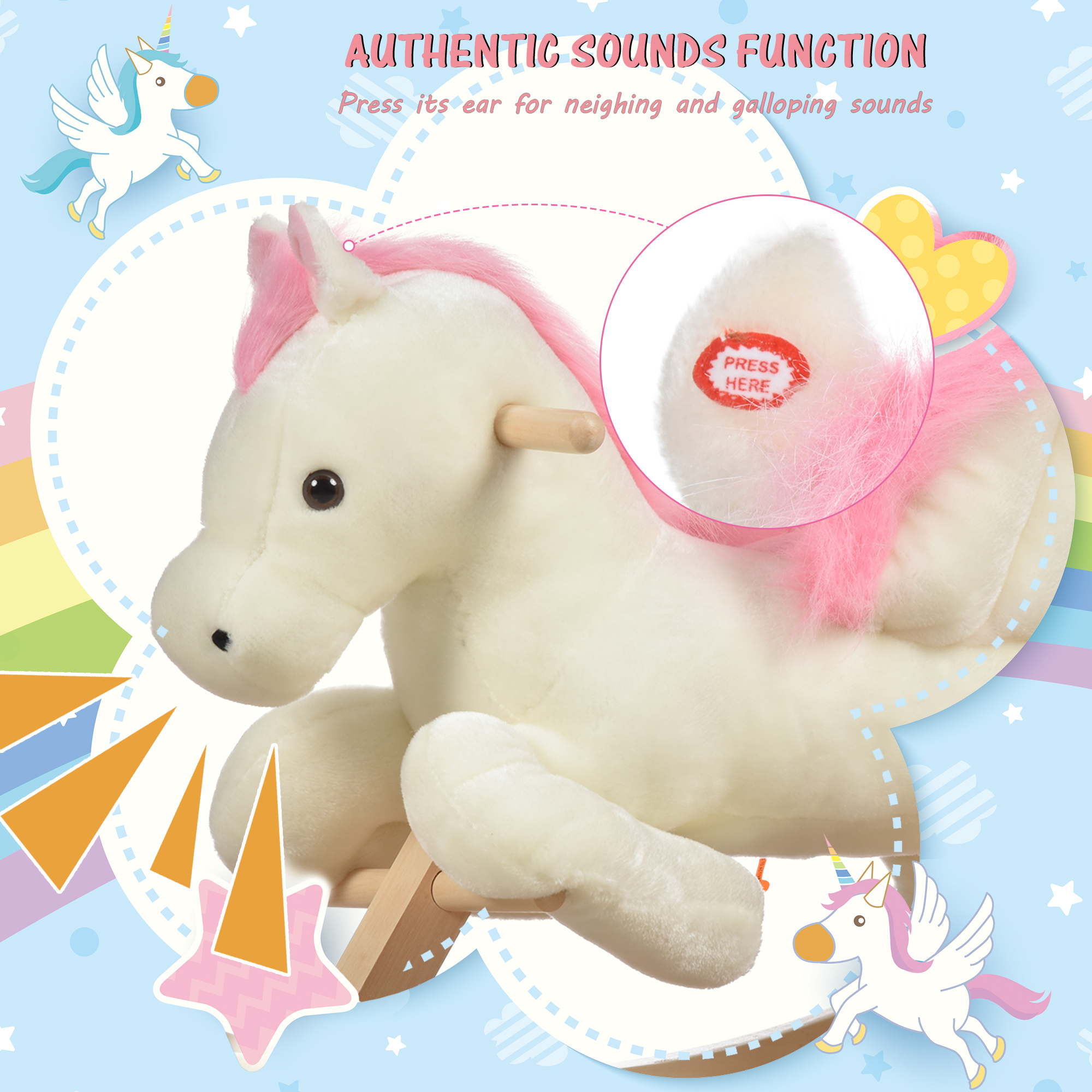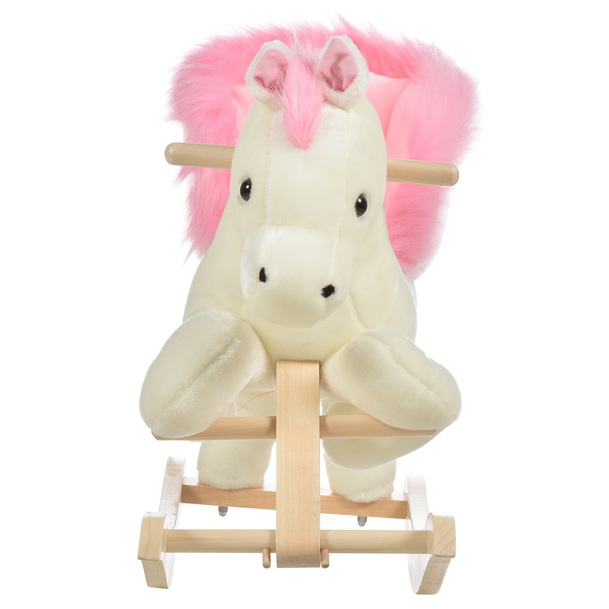 Cal Balansoar Alb si Roz cu Sunete si Structura din Lemn de Plop