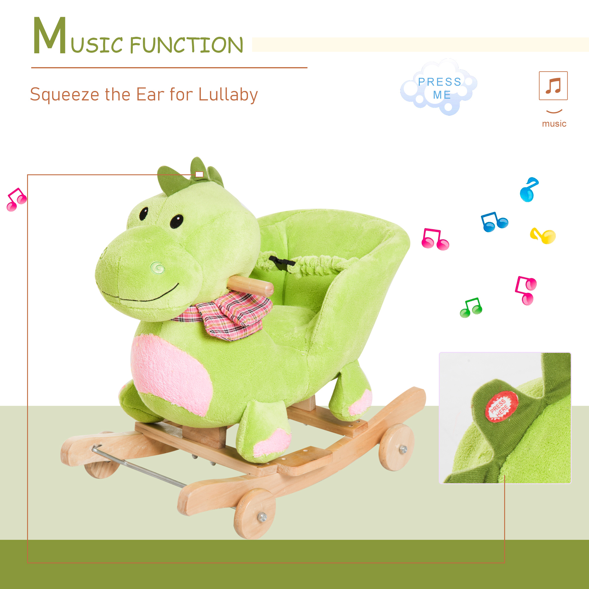 Acest cal dragut si amuzant va fi un cadou bun pentru copiii dvs., a trecut toate inspectiile de certificare EN71-1, EN71-2, EN71-3, EN62115, cu materiale de inalta calitate si design ergonomic si rotile robuste. Baza si perna moale a scaunului ofera copilului dumneavoastra un loc sigur si confortabil pentru a se juca, exersand eficient echilibrul si abilitatile audio-vizuale.