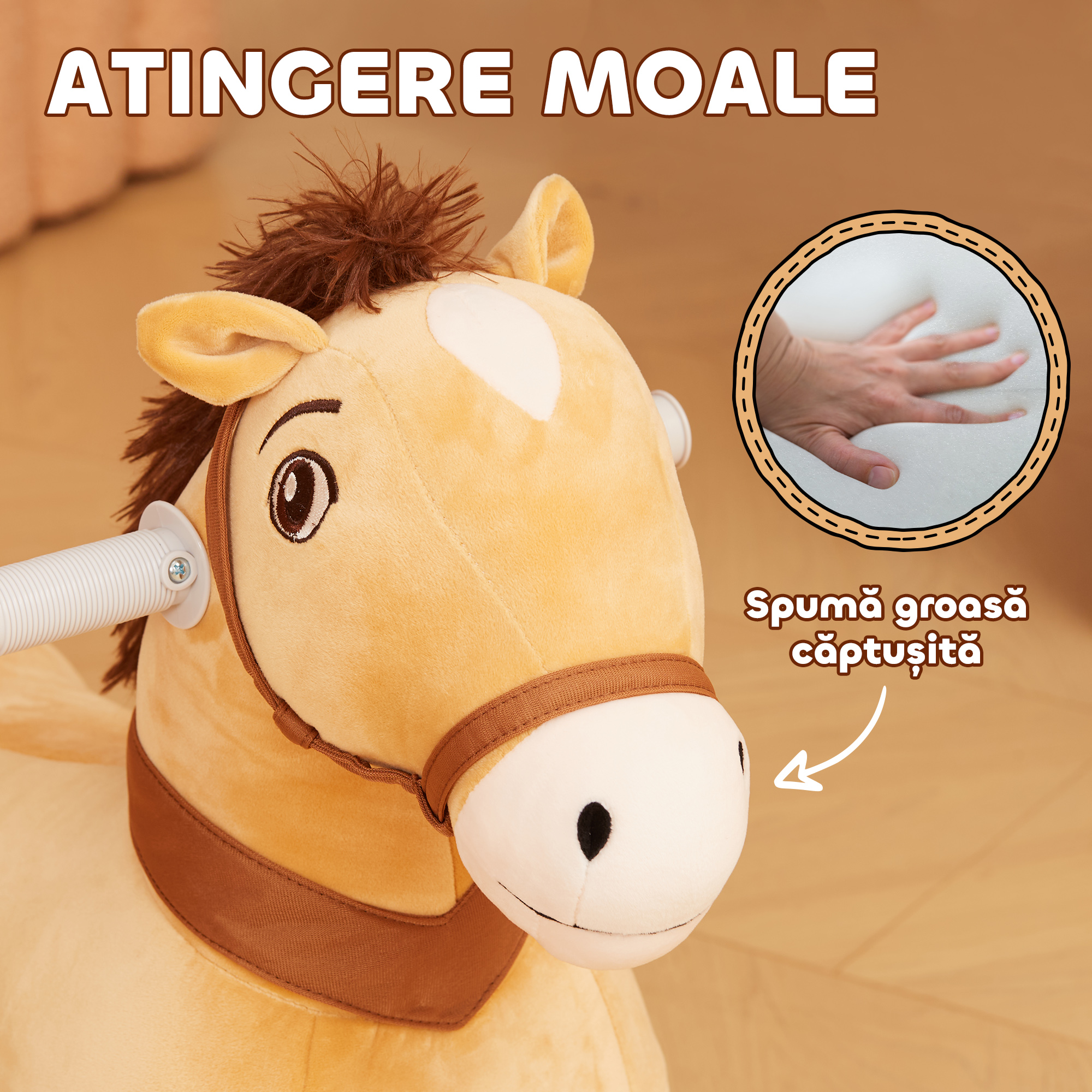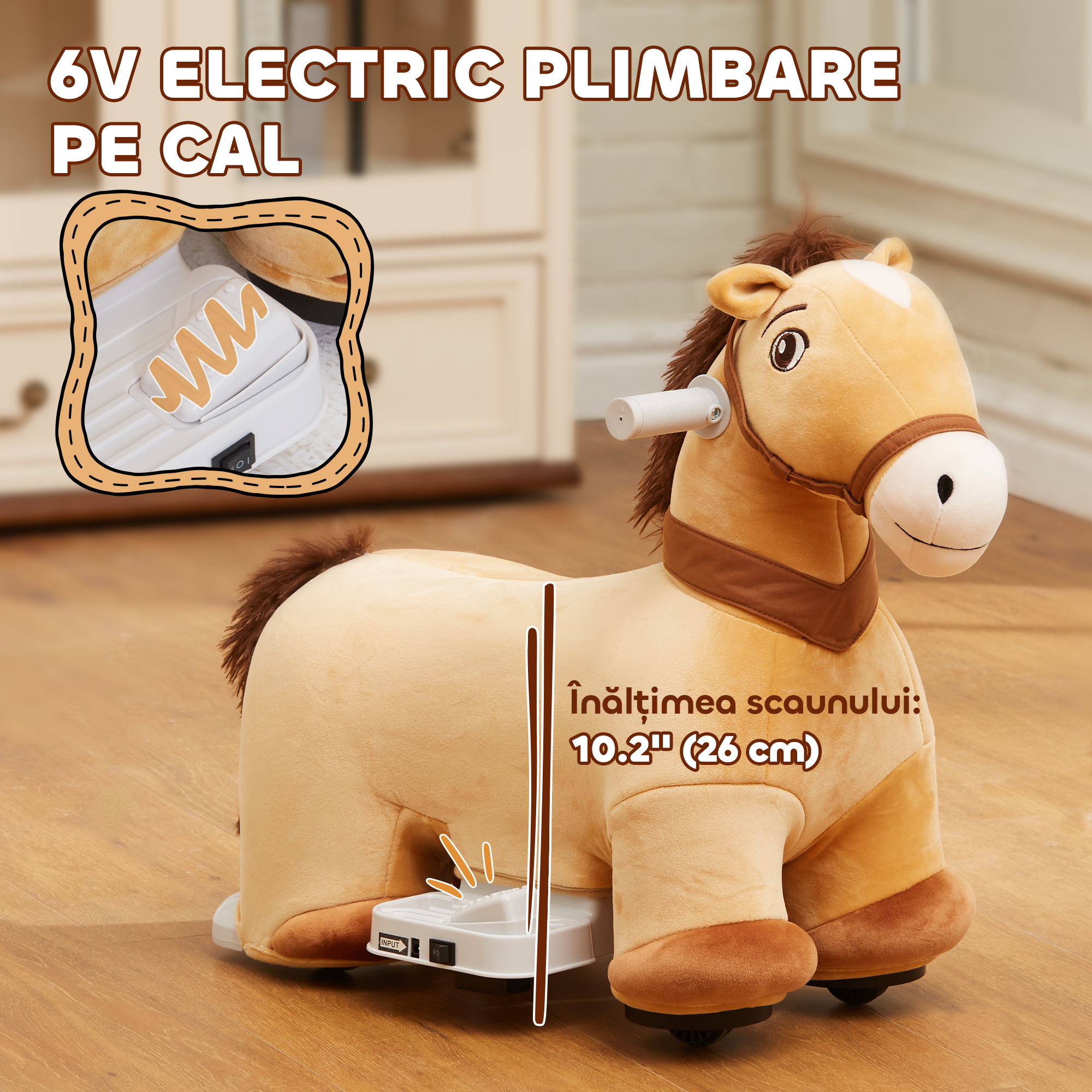 Ofera bucurie copiilor cu calul electric [BRAND NAME], potrivit pentru varstele 18-36 luni. Realizat din poliester moale, cu baza stabila, muzica integrata si roti pentru mobilitate, stimuleaza joaca interactiva si dezvoltarea motrica. Designul realist si functiile distractive transforma timpul liber intr-o experienta amuzanta si educativa. Perfect pentru joaca sigura si creativa acasa.