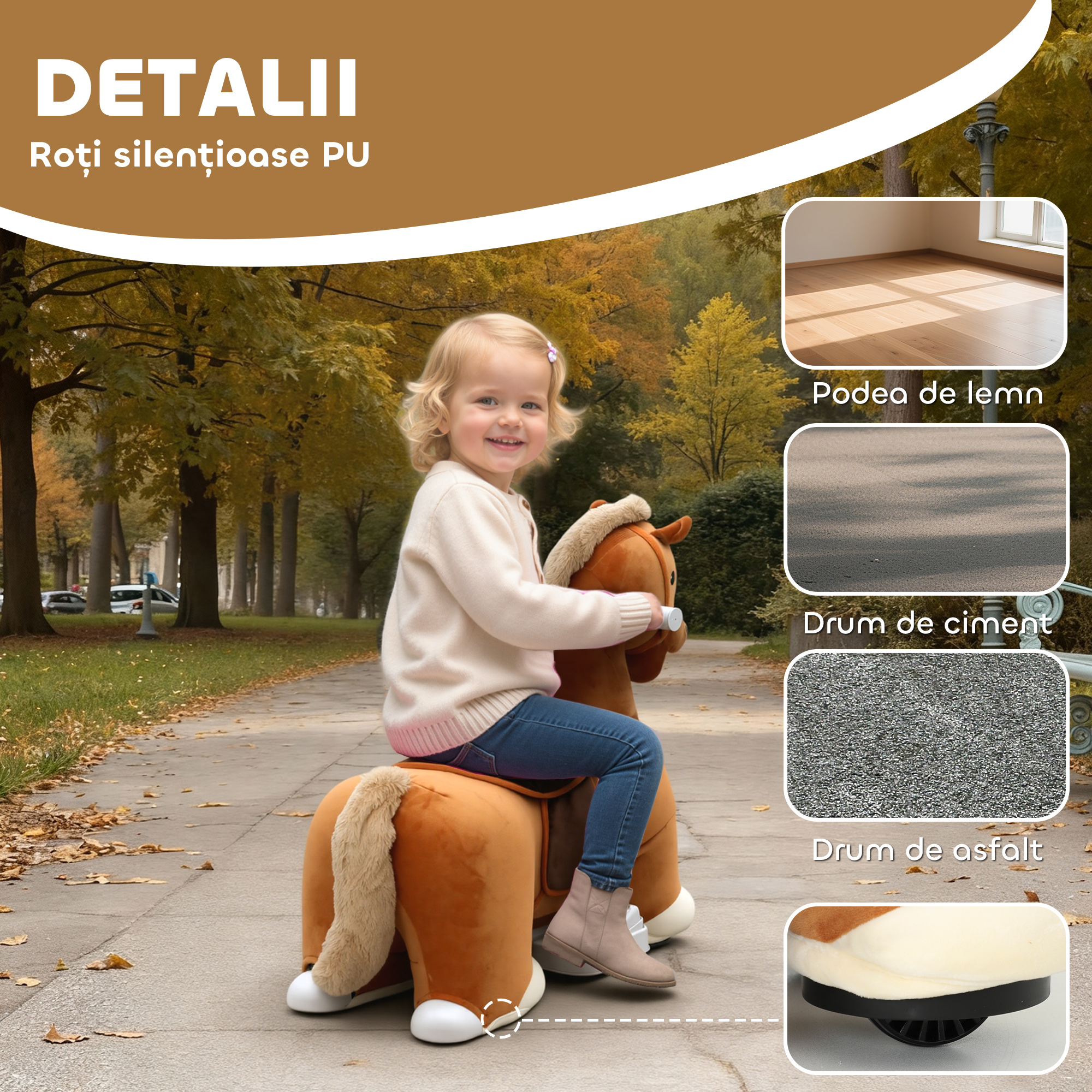 Calul electric [BRAND NAME] transforma camera de zi intr-o prerie fermecata pentru toate aventurile micutilor din casa. Jucaria este activata cu o pedala usor de utilizat si insotita de melodii vesele, oferind pana la 40 de minute de distractie sigura in miscare. Ofera momente de relaxare si visare cu acest cal electric pentru copii.