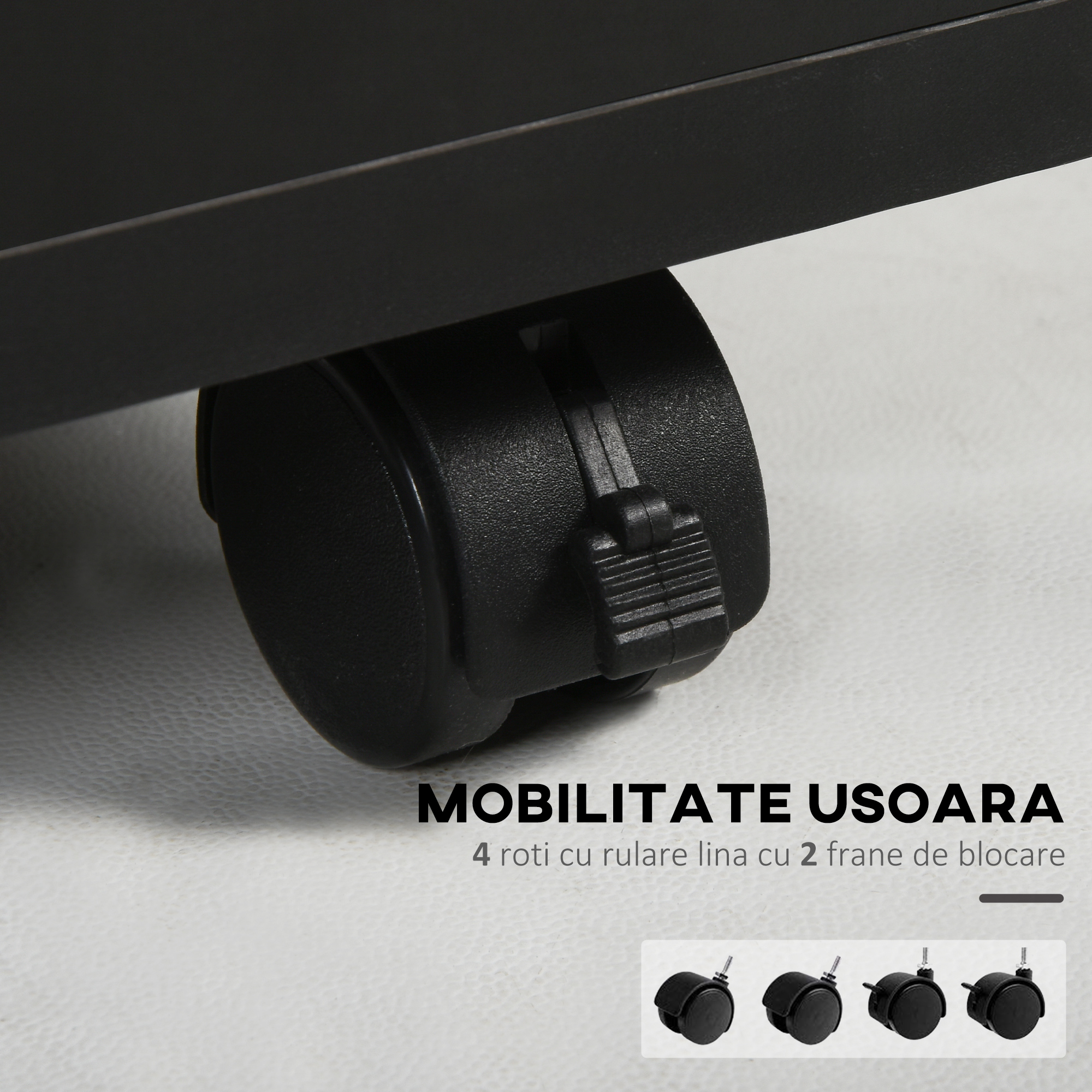 - • 4 rotile pivotante (2 cu frane) pentru a muta usor mobilierul de birou