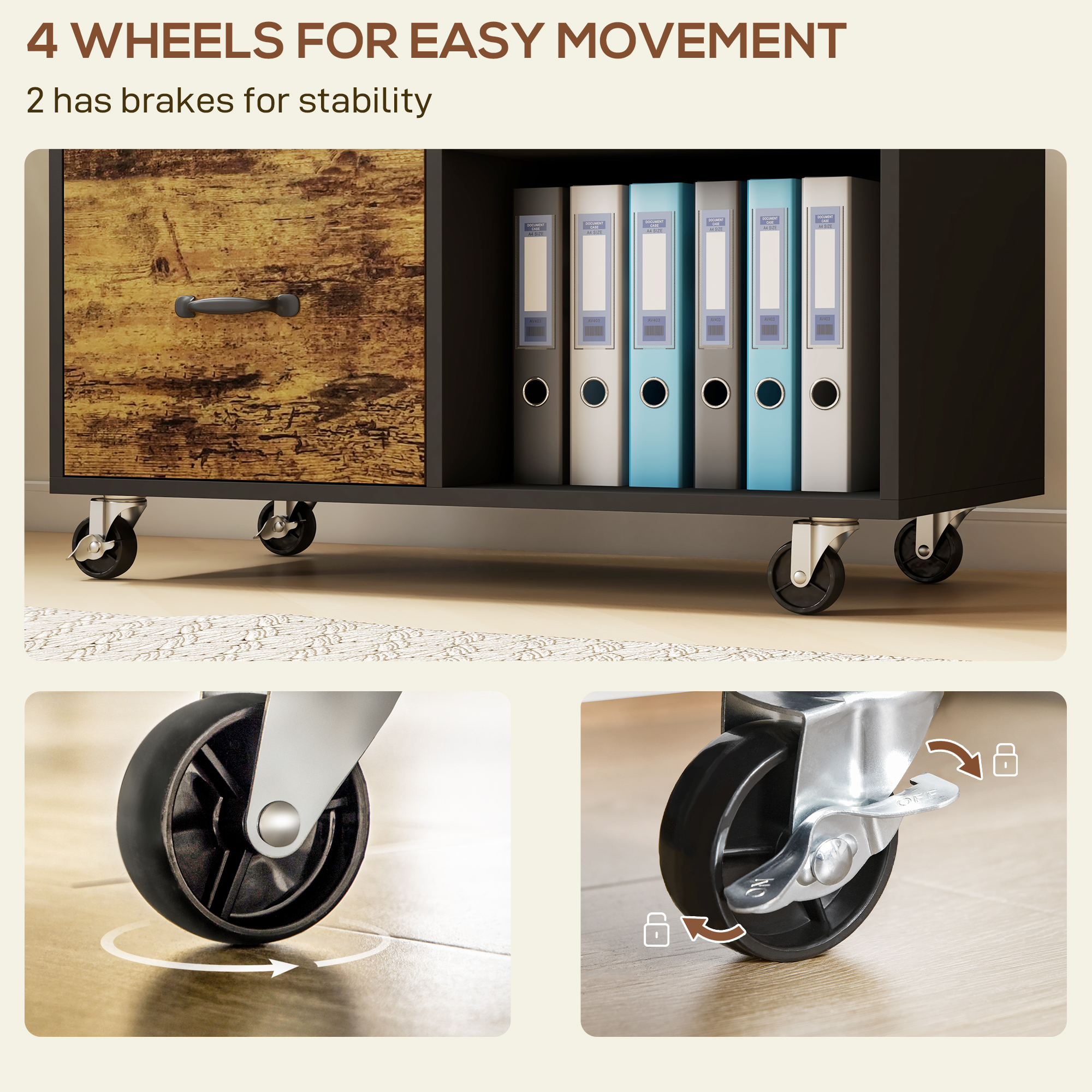 - UsOR DE MUTAT: Caruciorul nostru de imprimanta este echipat cu 4 roti, dintre care doua au frane, permitand miscarea usoara si pozitionarea stabila oriunde in birou sau studioul de acasa