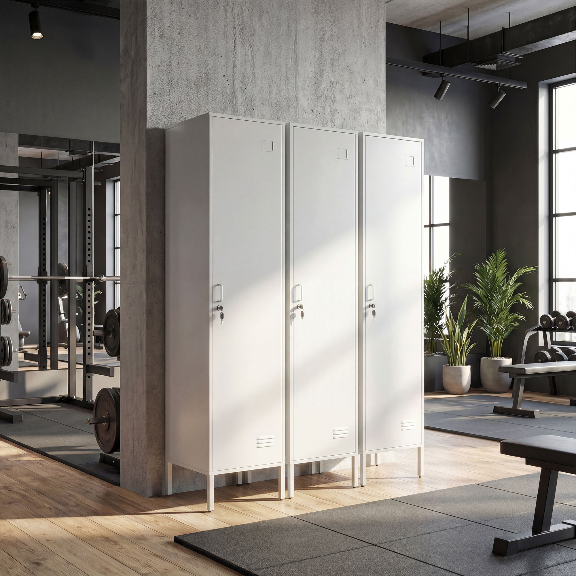 - • Dulap metalic cu usa de otel blocabila si fante de aerisire care mentine obiectele in siguranta, favorizand circulatia aerului