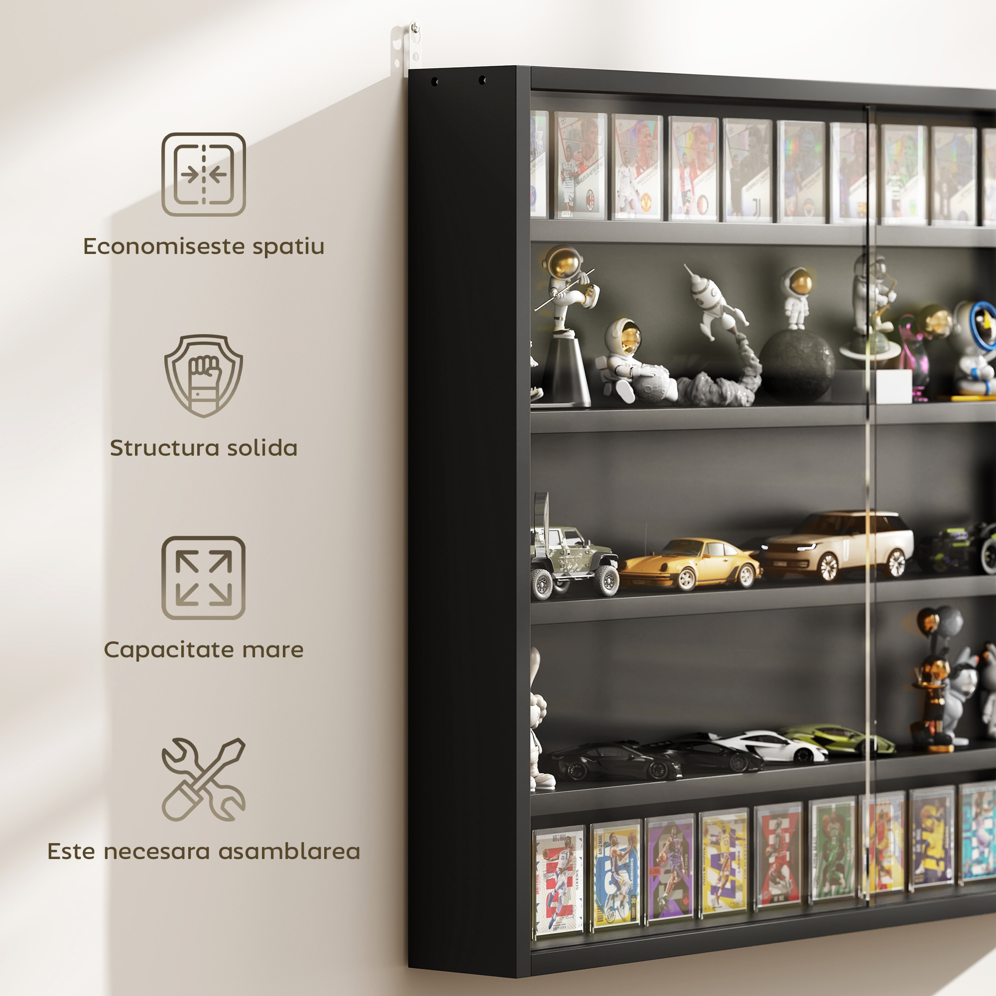 Aveti multe obiecte mici pe care nu stiti cum sa le puneti in ordine sau aveti mai multe suveniruri si jucarii pretioase pe care nu doriti sa le rupa copiii? Vitrinele [BRAND NAME] pentru obiecte de colectie pot rezolva ambele probleme. Cele patru rafturi reglabile din interior va pot oferi cinci straturi pentru obiecte mici. Usile mari din sticla va permit sa va admirati bunurile pretioase din interior. Aratati de ce sunteti cel mai mandru cu acest dulap montat pe perete de la [BRAND NAME].