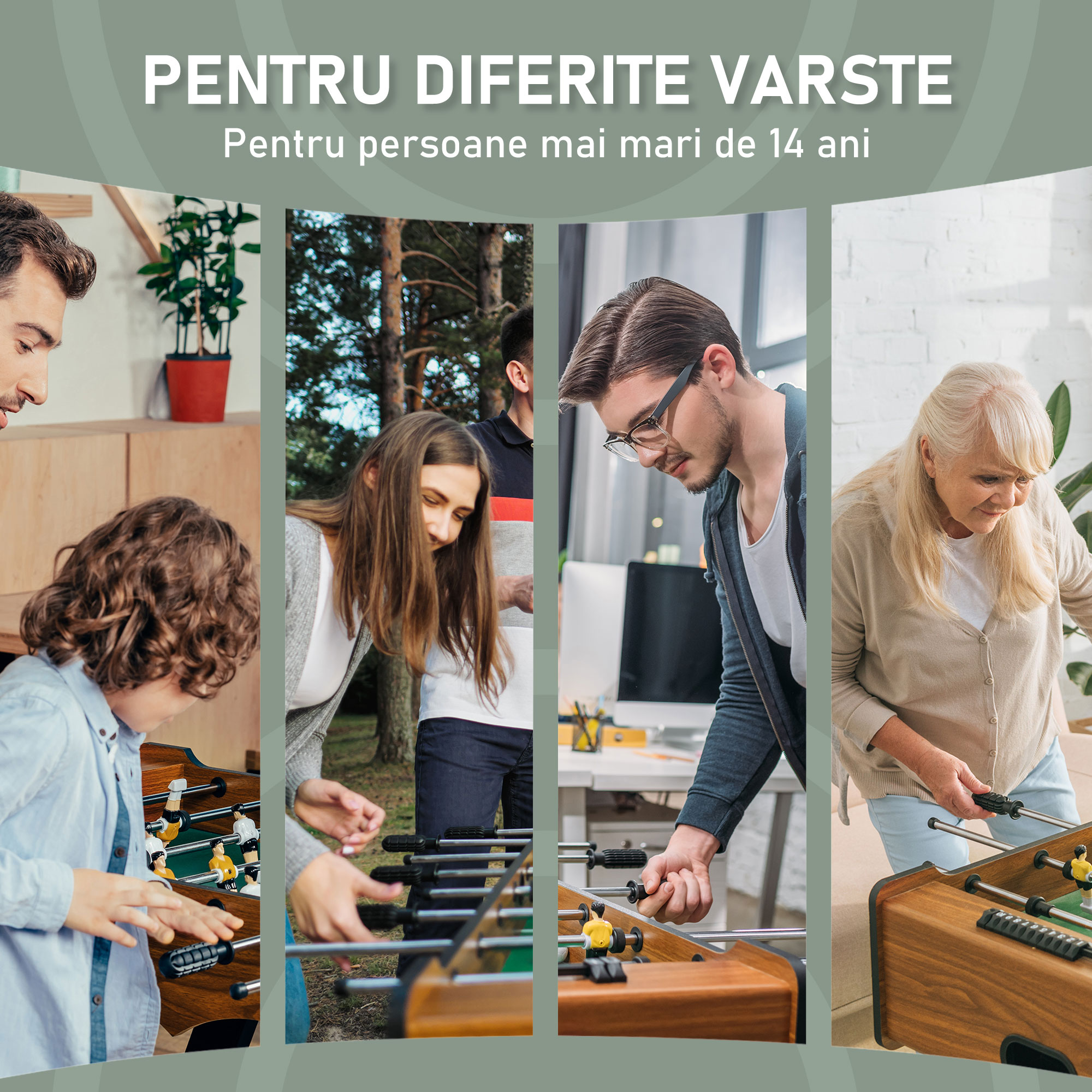 Umple casa ta cu distractie cu acest biliar pliabil [BRAND NAME]! Panourile din MDF il fac mai stabil si rezistent la uzura. Design-ul pliabil iti permite sa il depozitezi usor in spatiile mici. Este dotat cu mingi, 18 jucatori si panou de inregistrare a punctajului