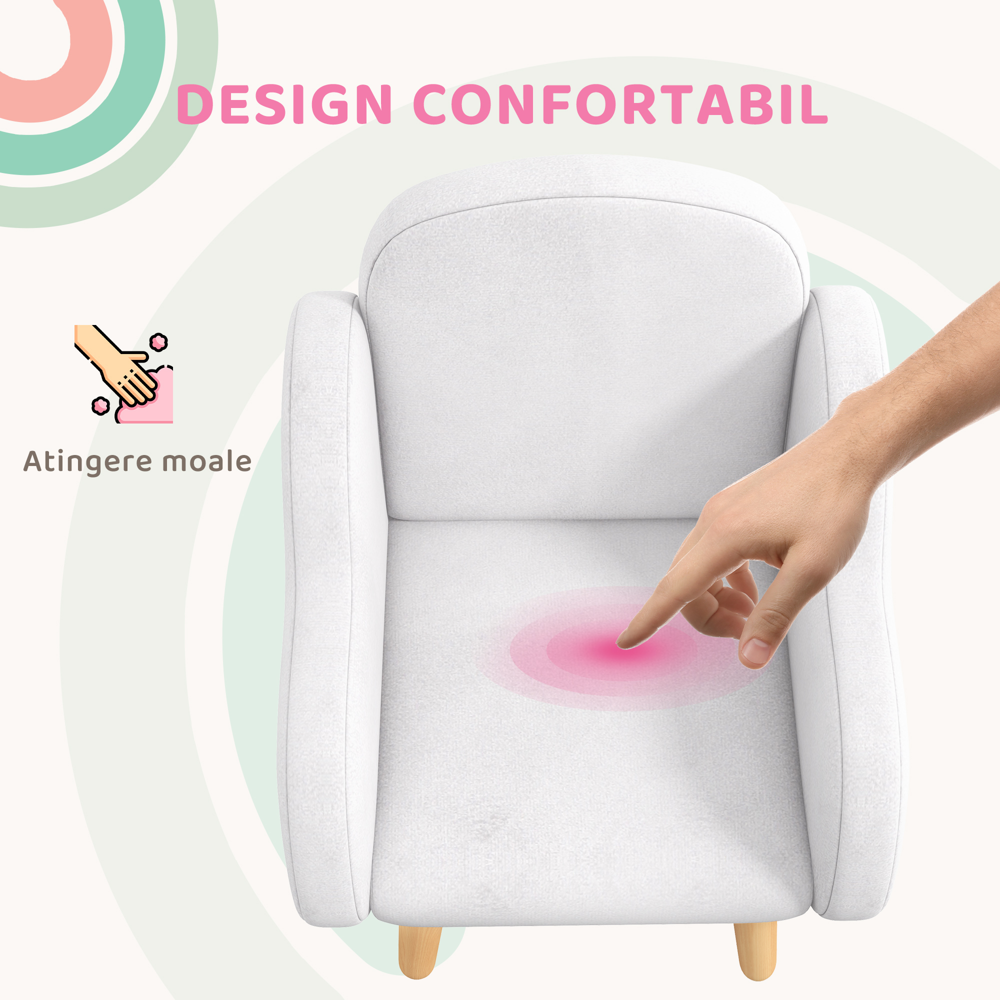 Fotoliul pentru copii cu brate rotunjite in forma de nor [BRAND NAME] ofera un design vesel si sigur, confort optim datorita husei din material textil de inalta densitate si dimensiuni potrivite pentru copii de peste 18 luni. Capacitatea sa maxima de incarcare de 40 kg si durabilitatea il fac o alegere ideala pentru copiii mici care doresc un loc confortabil si sigur unde sa se aseze si sa se relaxeze.