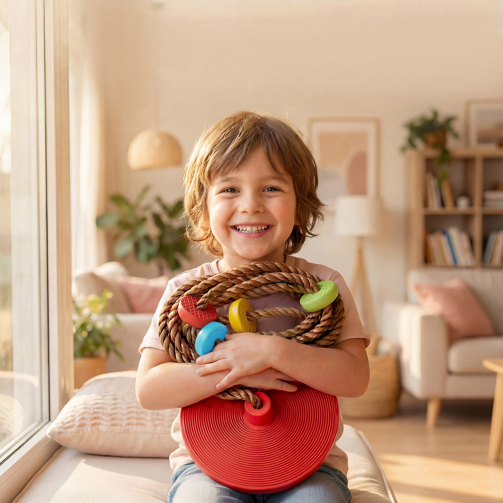 Proiectat pentru a transforma spatiile de zi cu zi in zone de joaca, acest joc de catarare [BRAND NAME] include un leagan cu disc cu suporturi pentru picioare integrate, oferind distractie maxima. Jocul permite copiilor sa se bucure de oscilatii, catarari si echilibru precar, dezvoltand forta, coordonarea si increderea in sine. Perfect pentru un dupa-amiaza activ si captivant in aer liber, acest joc ii va provoca pe cei mici sa accepte noi provocari, mereu interesante si sigure.