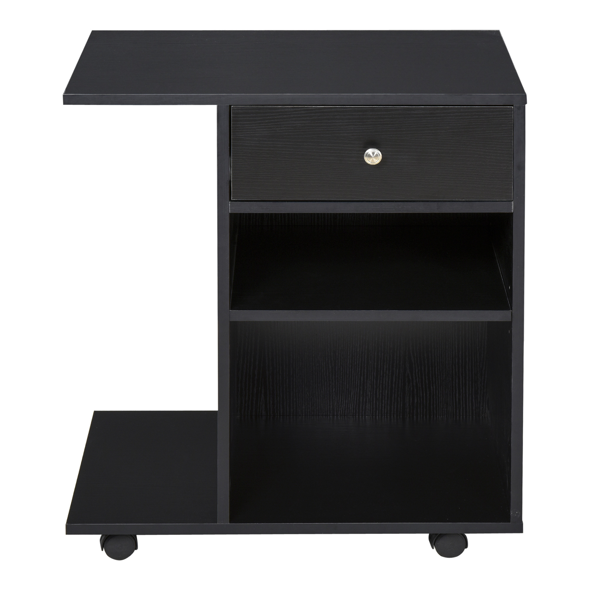 Biroul tau va deveni mai eficient cu ajutorul acestei mobile pentru imprimanta [BRAND NAME]. Are o suprafata ampla de sprijin pentru asezarea imprimantei, un sertar si doua rafturi deschise unde se pot aseza in ordine topurile de hartie si alte articole de birotica. Raftul din partea stanga este perfect pentru asezarea CPU. Cele 4 roti (din care 2 sunt dotate cu frana) iti permit sa muti mobila pentru imprimanta fara niciun efort si sa-ti creezi coltul pentru imprimarea documentelor acolo unde iti doresti.