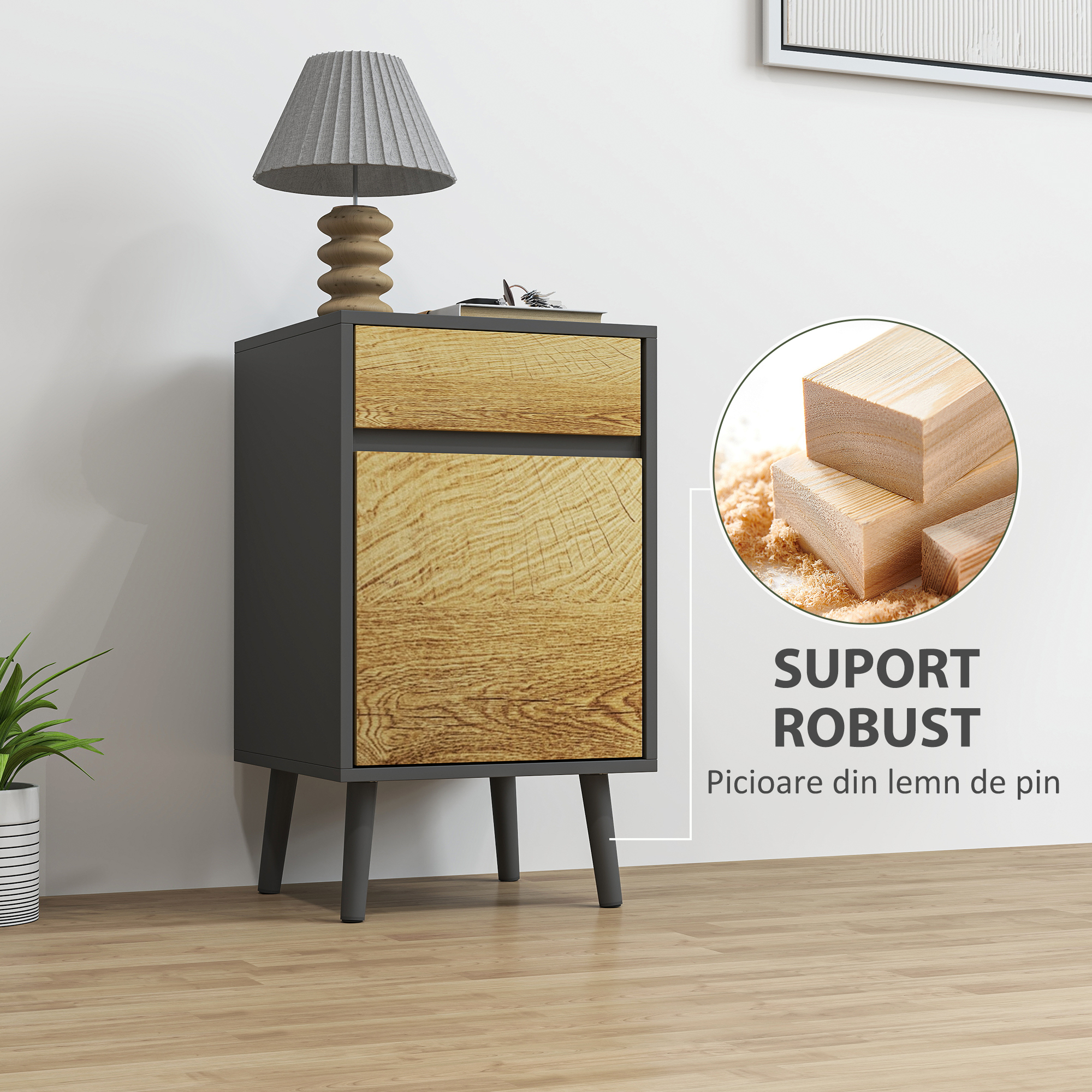 Descopera eleganta noptierei moderne [BRAND NAME], un amestec perfect intre stil si functionalitate. Dotata cu un sertar si un dulapior cu raft reglabil pe trei niveluri, aceasta noptiera pentru dormitor iti permite sa ai totul la indemana. Cu o structura din PAL si picioare rafinate din lemn de pin, noptiera cu sertar adauga un plus de stil si utilitate oricarui spatiu.
