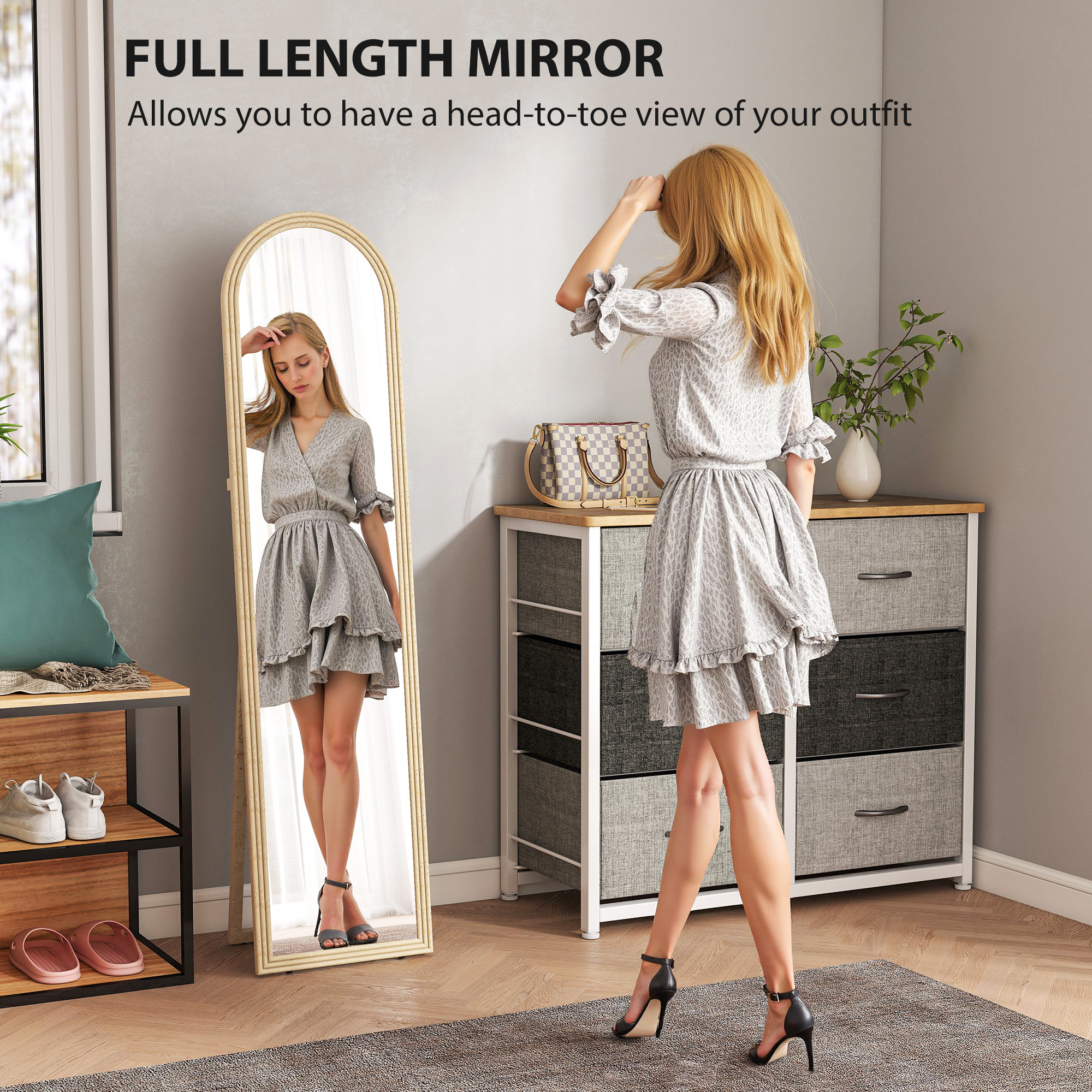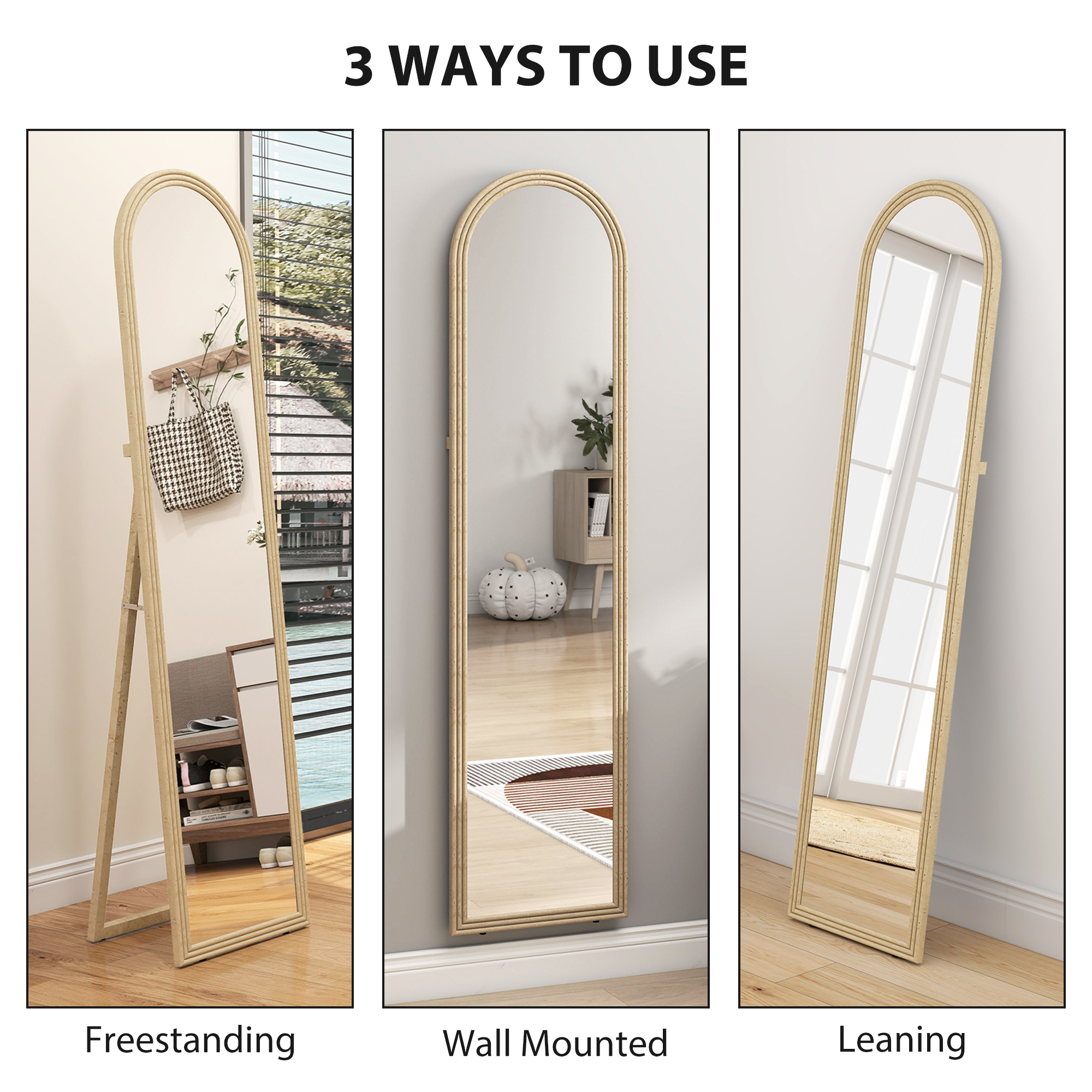 • TEXTURa EFECT DE PIATRa: Aceasta oglinda de podea adauga eleganta spatiului tau cu o rama bej cu textura realista de piatra. Designul sau sofisticat arcuit pe 3 niveluri adauga profunzime, transformandu-l intr-un element decorativ.