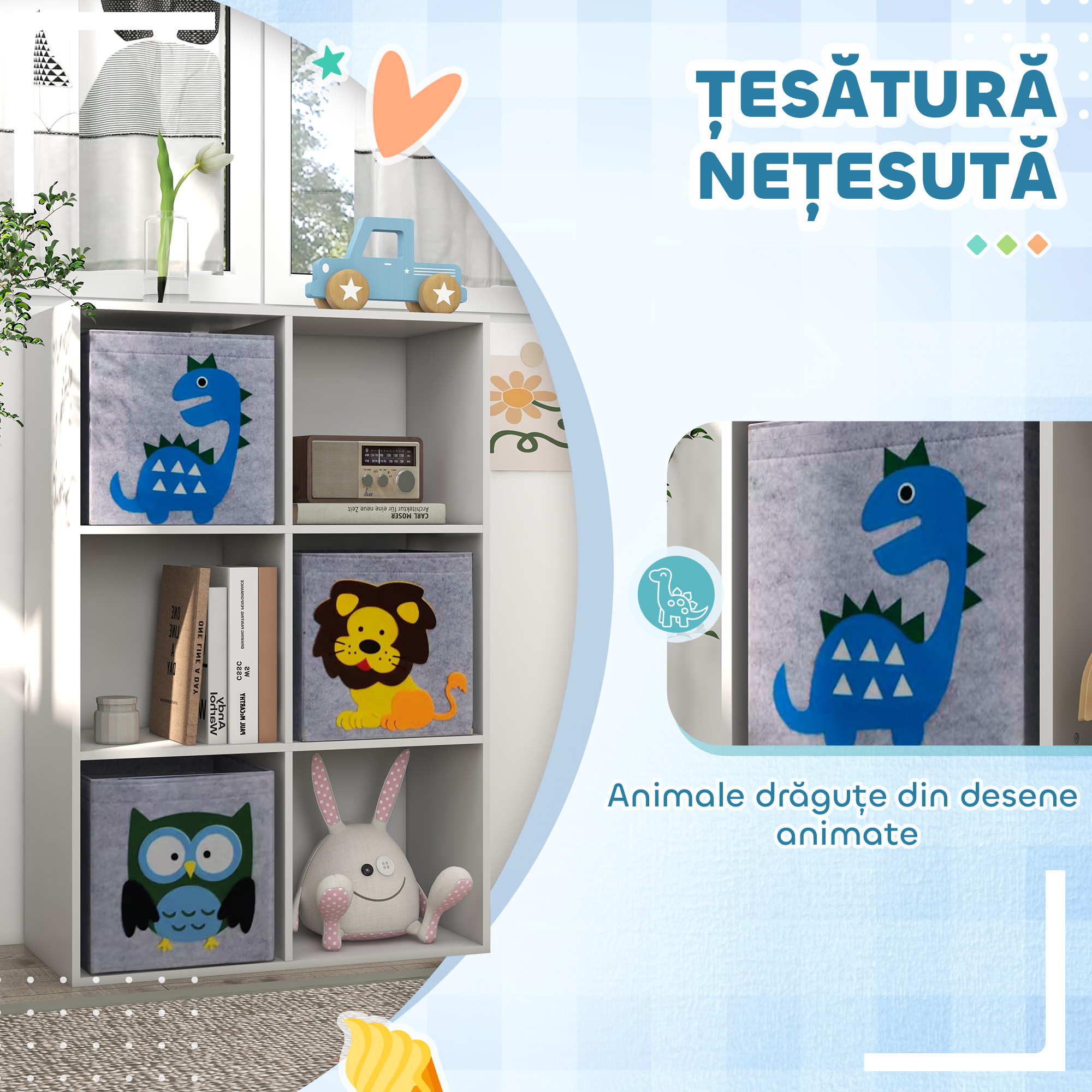 Cutia de depozitare a jucariilor [BRAND NAME] ofera o solutie ideala de organizare pentru camera copilului dumneavoastra. Cu sase cuburi de depozitare spatioase, ofera mult spatiu pentru jucarii, carti, haine si multe altele. Proiectata pentru stabilitate, se aseaza in siguranta pe podea si include un dispozitiv anti-rasturnare pentru siguranta. Asamblarea este simpla, economisind timp si efort. Sertarele fermecatoare din material cu desene animate nu numai ca sporesc durabilitatea, dar adauga si un element de design jucaus spatiului copilului dumneavoastra.