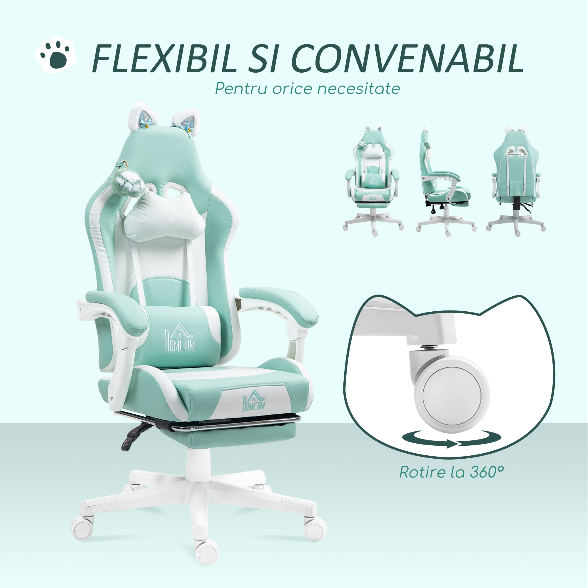 Obtine performante maxime in joc si studiu cu scaunul de gaming [BRAND NAME] cu suport pentru picioare integrat. Decorat cu urechi si labe de pisica dragute pentru a adauga un strop de originalitate, acest scaun iti permite sa te scufunzi in confort cu captuseala din spuma de densitate medie, in timp ce inaltimea reglabila de la 44 la 52 cm iti permite sa gasesti pozitia ideala.