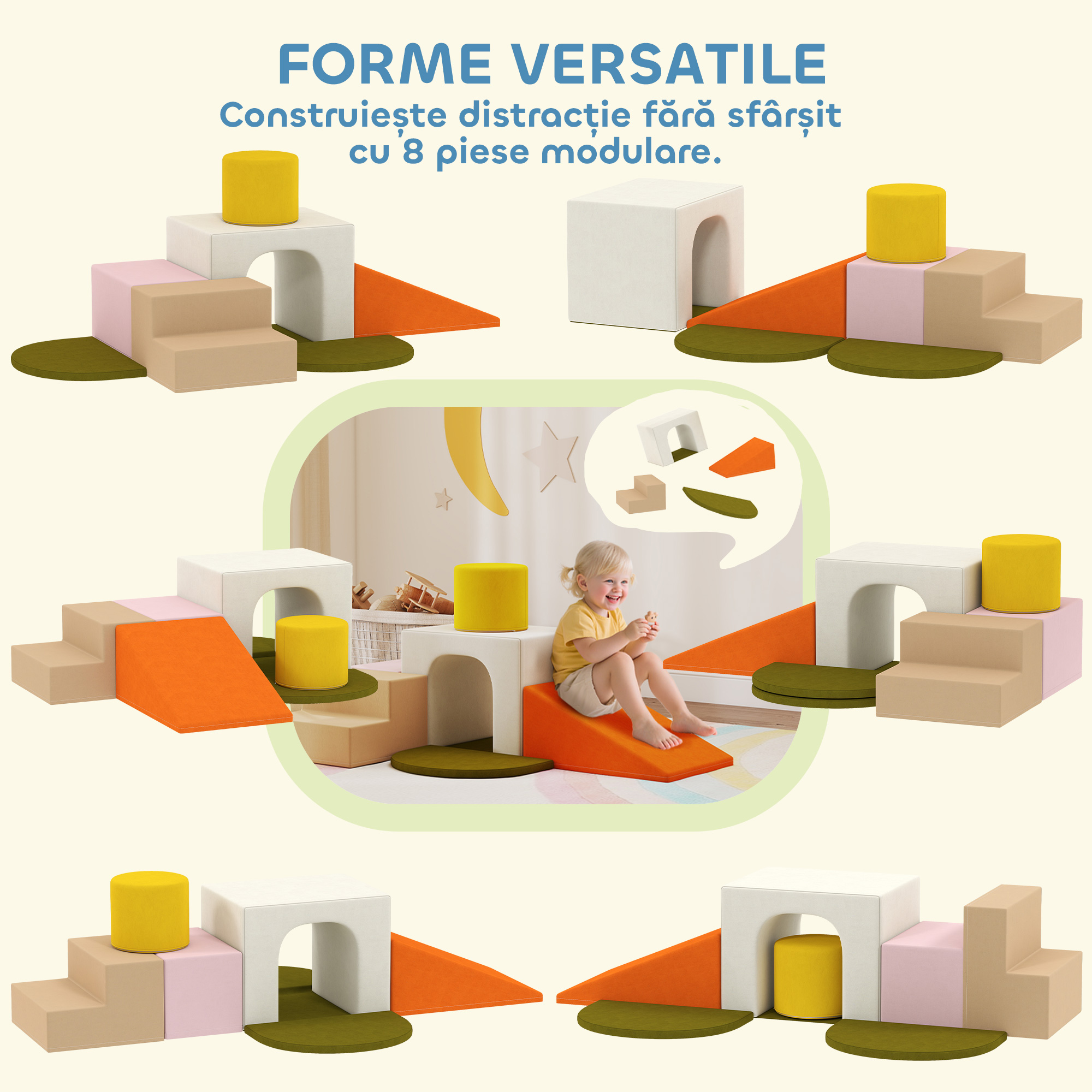 • • Constructii moi realizate din catifea moale si spuma rigida pentru un divertisment captivant si fara stres