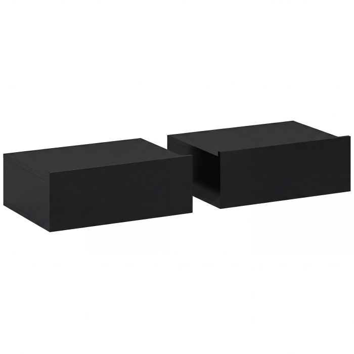 Maximizeaza-ti spatiul cu acest set de 2 noptiere suspendate [BRAND NAME]. Designul compact si inteligent se monteaza usor pe perete, creand o suprafata practica pentru obiectele esentiale de noapte, mentinand dormitorul tau ordonat si spatios. Foloseste-le impreuna pentru un aspect echilibrat sau separat ca masute laterale elegante. Realizate din panouri de PAL melaminat, ofera o intretinere usoara si o durabilitate de incredere pentru utilizarea zilnica.