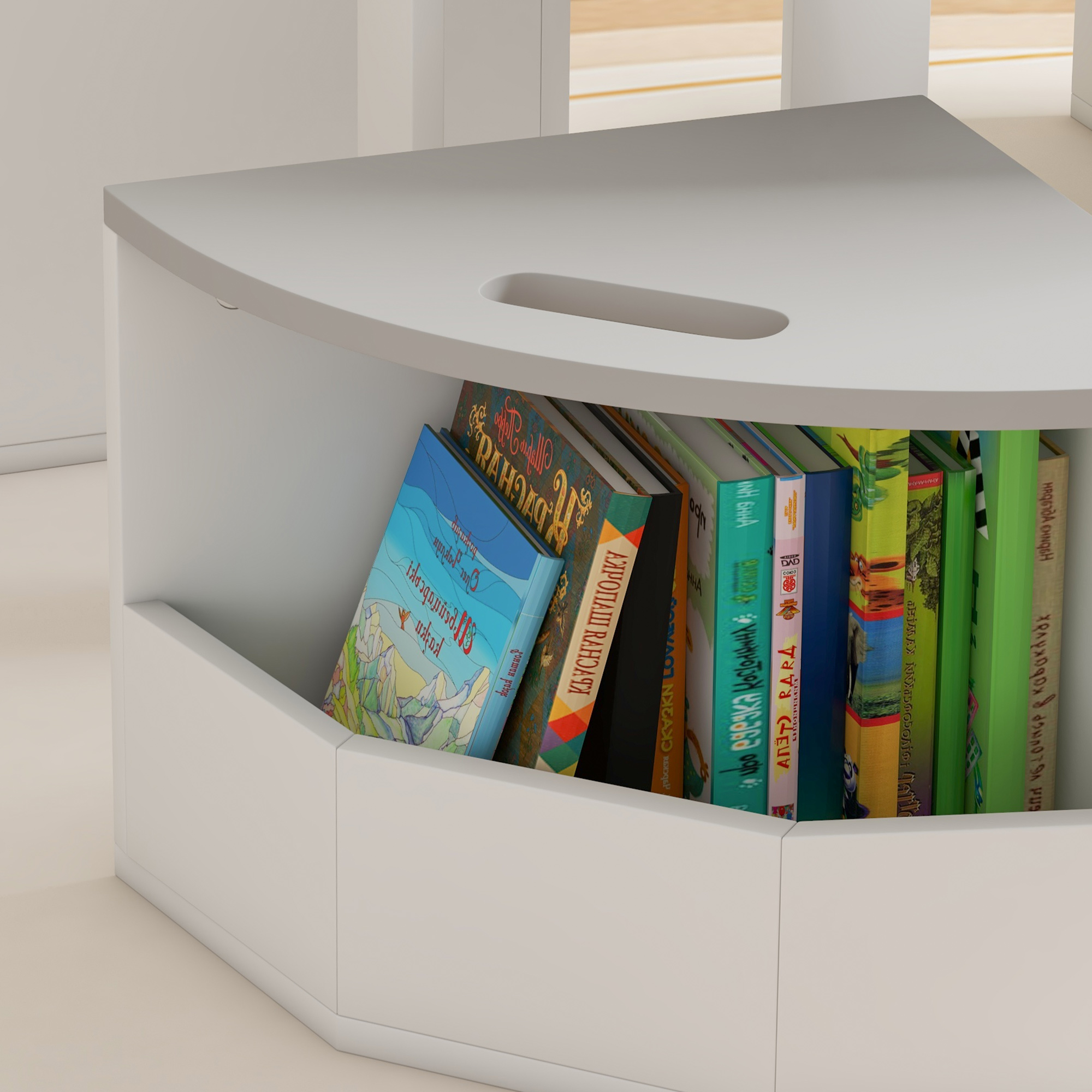 Descoperiti bucuria designului care economiseste spatiu cu setul de masa si scaun pentru copii [BRAND NAME]! Acest set de 5 piese plaseaza scaunele cu grija sub masa si include depozitare ascunsa sub fiecare scaun. Potrivit pentru orice zona de joaca, este un plus incantator pentru orice cresa sau casa. Excelent pentru momente de joaca creative, fara dezordine!