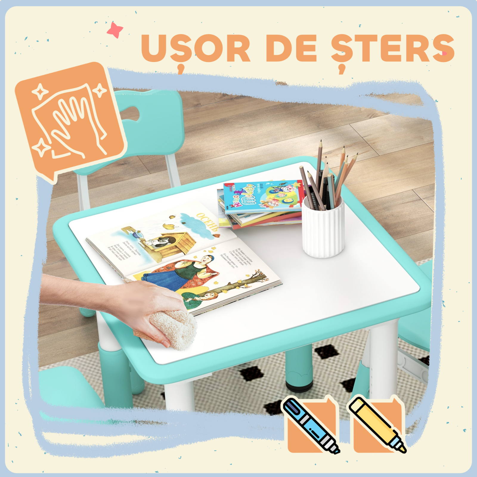 Asigura-ti setul masa si scaune pentru copii [BRAND NAME] pentru a le permite sa desfasoare numeroase activitati in acelasi loc pe masura ce cresc. Setul este format din 5 piese si are o suprafata neteda si usor de curatat, cu un design compact care permite depozitarea scaunelor sub masa atunci cand nu sunt folosite. Set perfect pentru scoli, gradinite sau camere de copii de acasa.