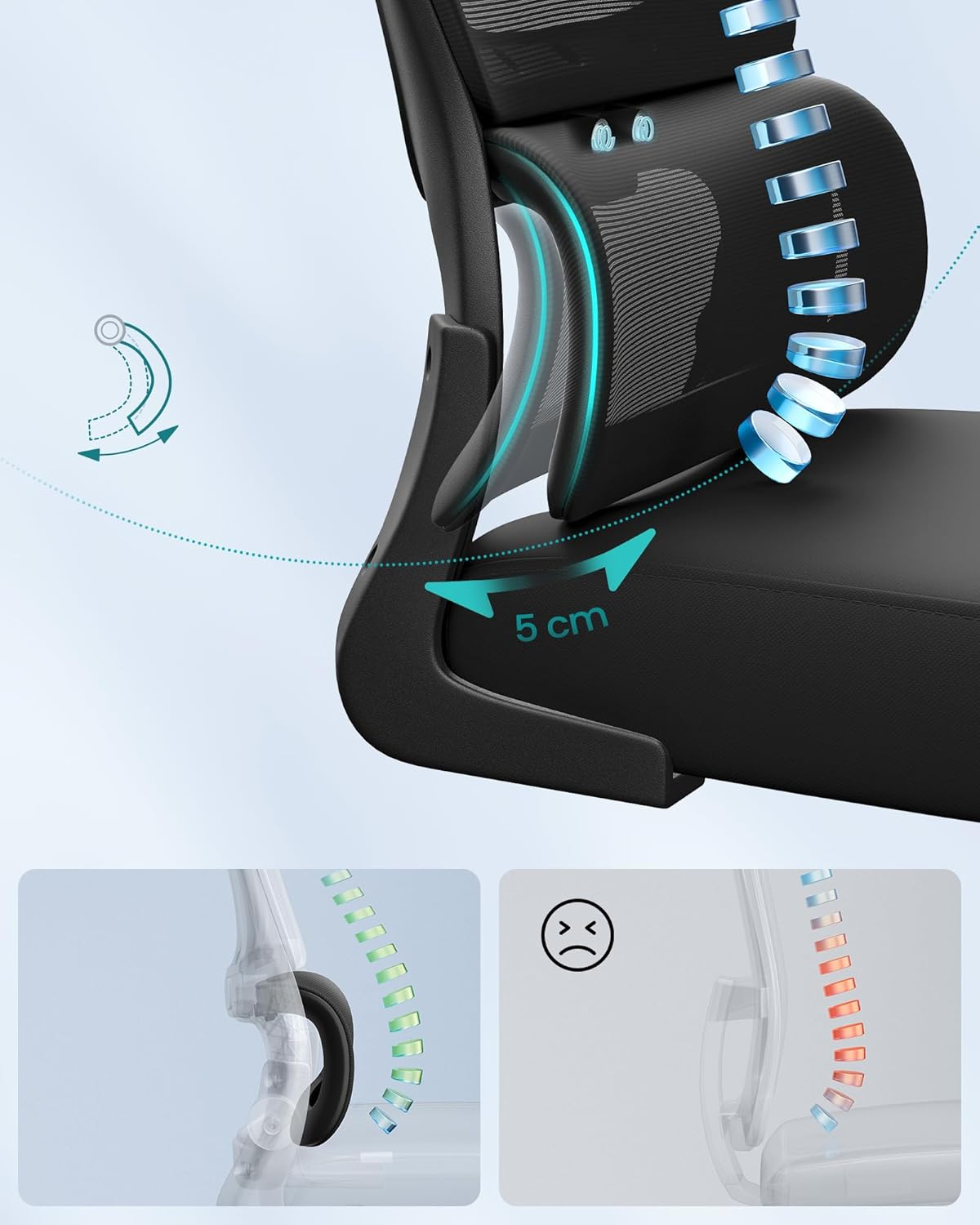 Scaunul ergonomic cu spatar mesh este ideal pentru lucru indelungat la birou. Ofera suport complet pentru spate, gat si zona lombara, mentinand o pozitie corecta si confortabila. Materialul respirabil si functiile ajustabile il fac potrivit pentru utilizare zilnica, acasa sau la birou.