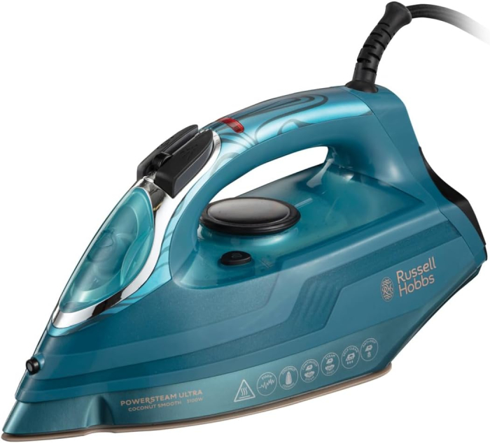 Fierul de calcat Russell Hobbs Powersteam Ultra Coconut Smooth are o talpa ceramica ce ofera o alunecare cu 50% mai facila*. Mai mult, talpa ceramica este de 2 ori mai durabila**, așadar mai rezistenta la zgarieturi și mai eficienta asupra cutelor.